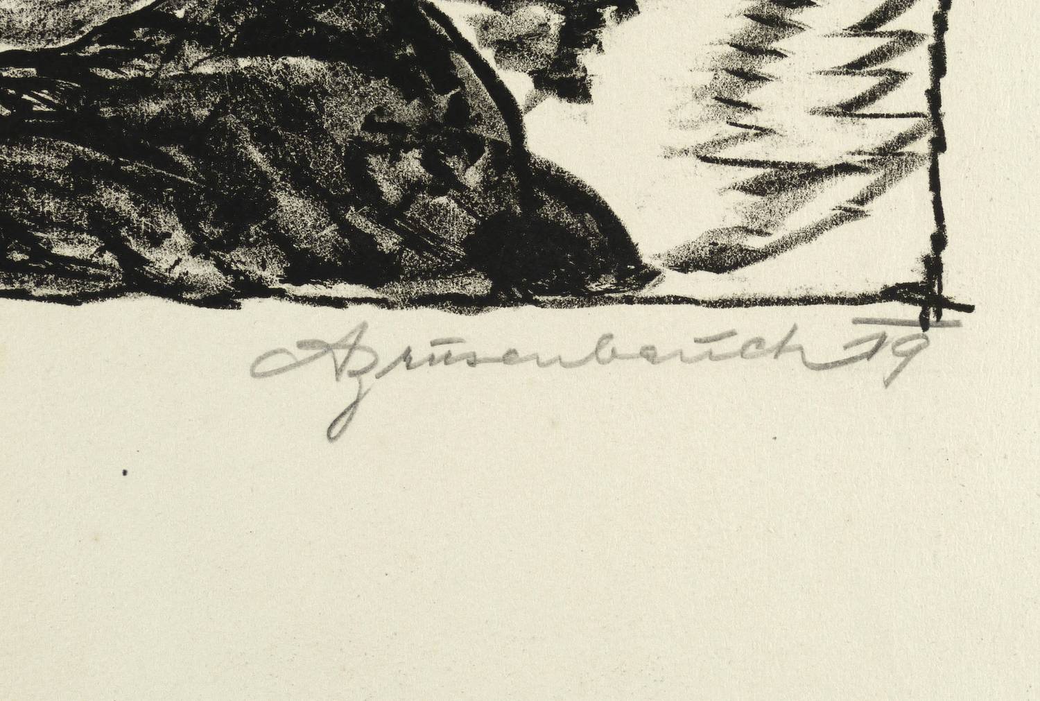 Rechts unten in Bleistift signiert und datiert: ″ABrusenbauch 19″. Im Stein links unten Monogramm. – Aus der Grafik-Sammlung eines Dresdner Künstlers. – Originalrandiges Exemplar. Papier mit leichten Altersspuren, etwas gegilbt, minimal fleckig sowie unmerklich randrissig. Ohne gravierende Mängel. Insgesamt guter Erhaltungszustand.