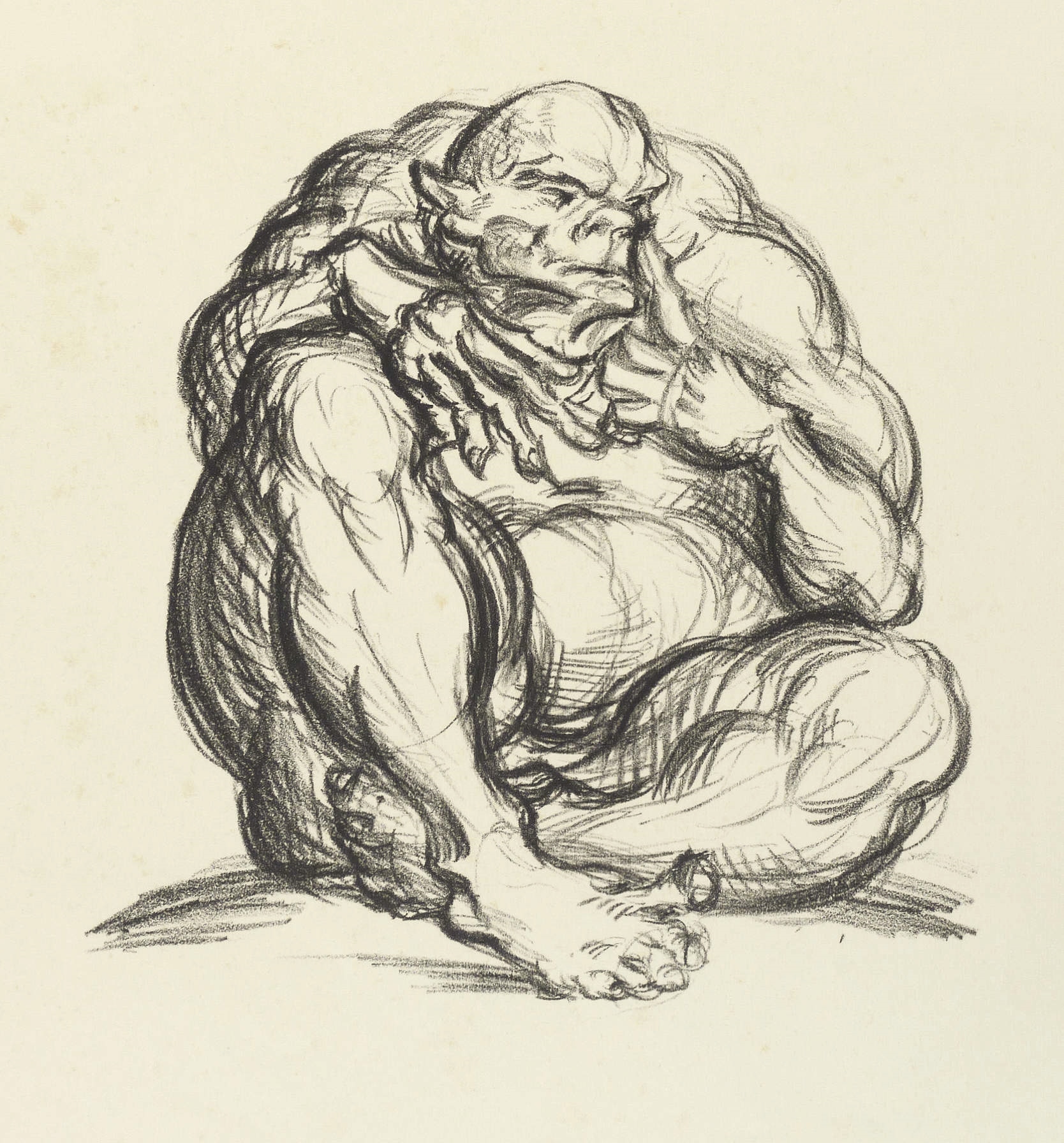 1918. Lithografie / Kreidelithografie, in Schwarz, auf hellgelbem Van-Gelder-Zonen-Bütten. – Originale Künstlergrafik, von Otto Hettner. – 28,4 x 27,5 cm (Darstellung / Stein), 46 x 59 cm (Blatt).