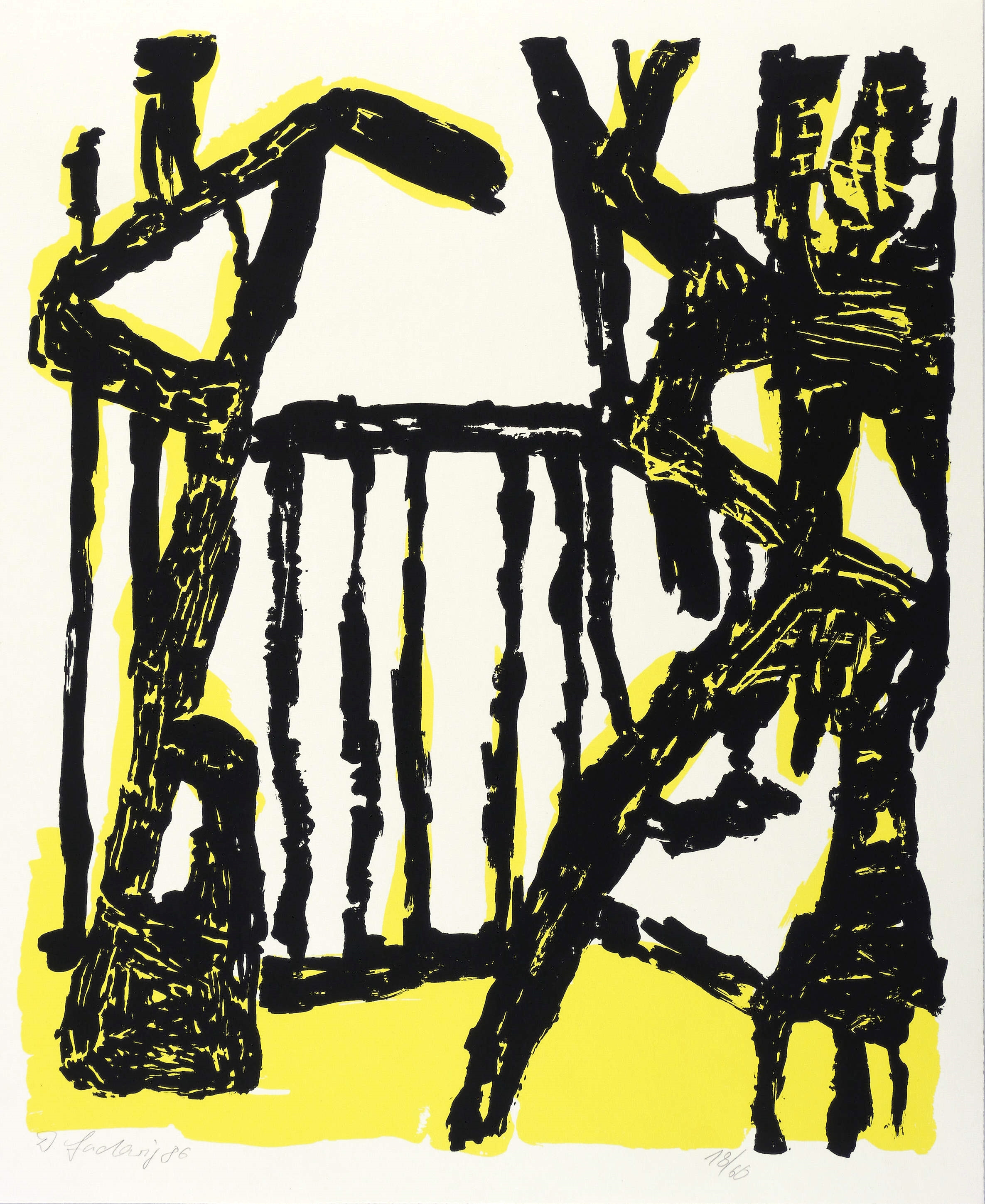 1986. Farbsiebdruck / Farbserigrafie, in Gelb & Schwarz, auf glattem weißem Karton. – Von Dieter Ladewig. – Auflage Exemplar Nr. 18/60. – 40,1 x 33,6 cm (Darstellung / Druckbild), 44 x 36 cm (Blatt).