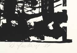 1987. Siebdruck / Serigrafie, in Schwarz, auf glattem weißem Karton. – Von Dieter Ladewig. – Auflage Exemplar Nr. 52/60. – 47,6 x 25,2 cm (Darstellung / Druckbild), 59 x 36 cm (Blatt).