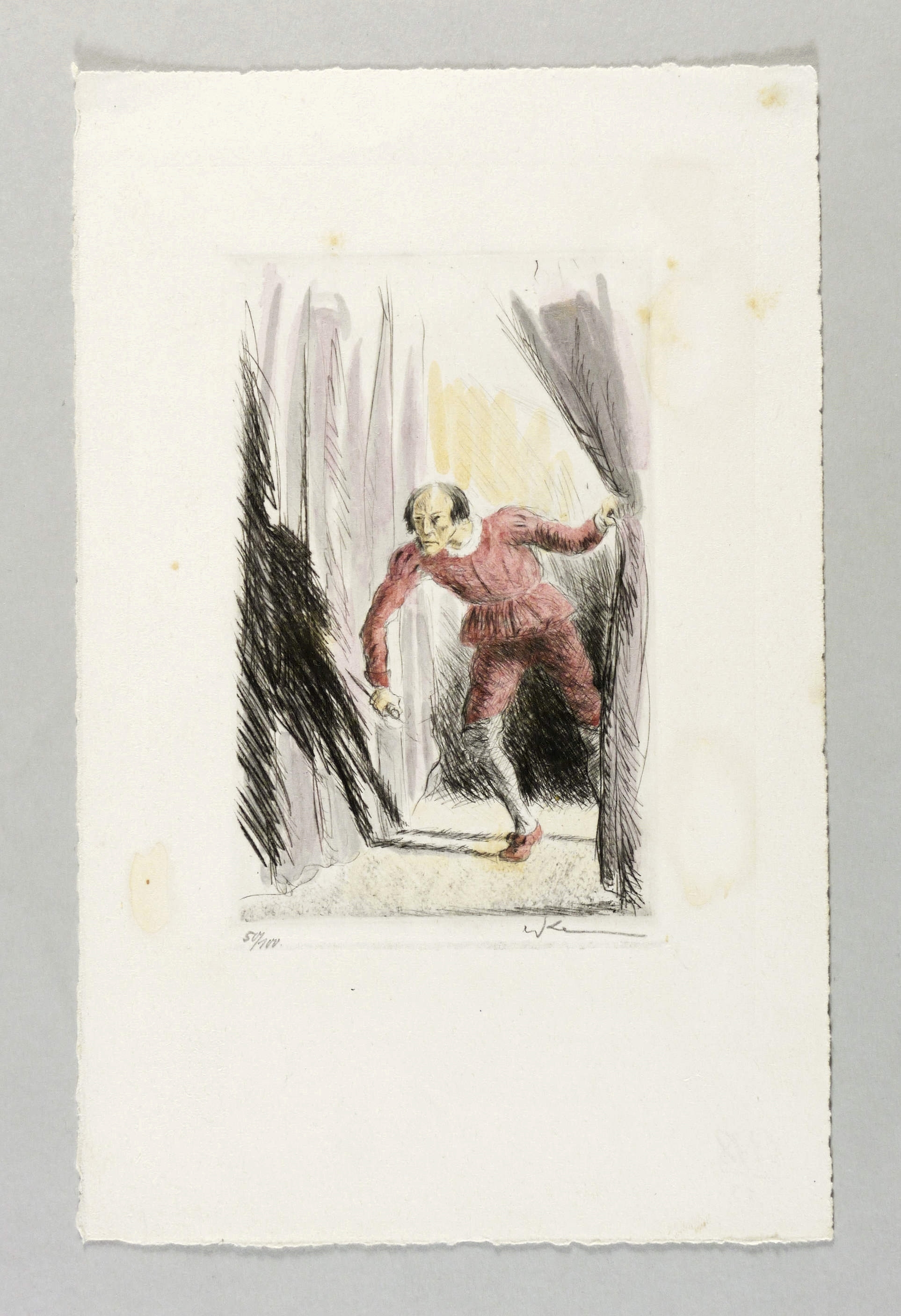 Aus: Walther Klemm, 12 Radierungen zu Giovanni di Boccaccio's Dekameron (München: Kern 1922). – Rechts unten in Bleistift signiert: ″WKlemm″. Links Auflagenbezeichnung. – Im Papierrand fleckig. Leichter Passepartoutabdruck. Insgesamt mäßig gut erhalten.