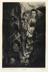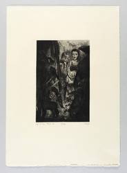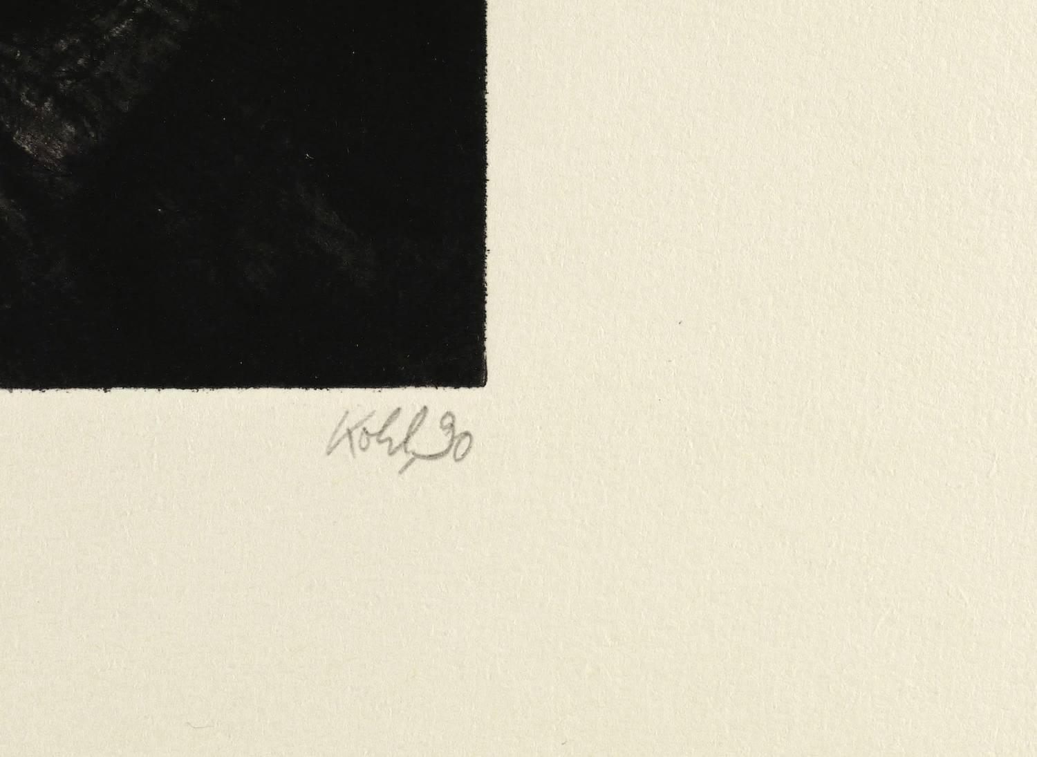 1990. Radierung / Kaltnadel & Roulette, in Schwarz, auf schwerem gelbem Velin. – Von Gisela Kohl. – Auflage Exemplar Nr. 71/100. – 24,5 x 16,1 cm (Darstellung / Platte), 48 x 34 cm (Blatt).