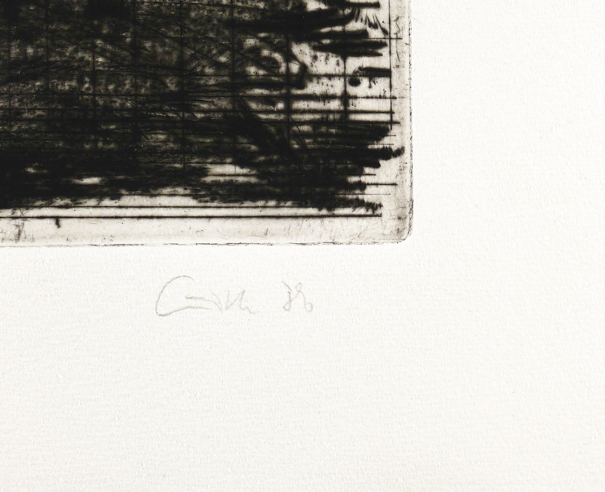 1986. Radierung / Kaltnadel & Roulette, in Schwarz, auf schwerem hellchamois Velin. – Originale Künstlergrafik, von Sighard Gille. – Auflage Exemplar Nr. 18/110. – 26,8 x 29,4 cm (Darstellung / Platte), 39 x 53 cm (Blatt).