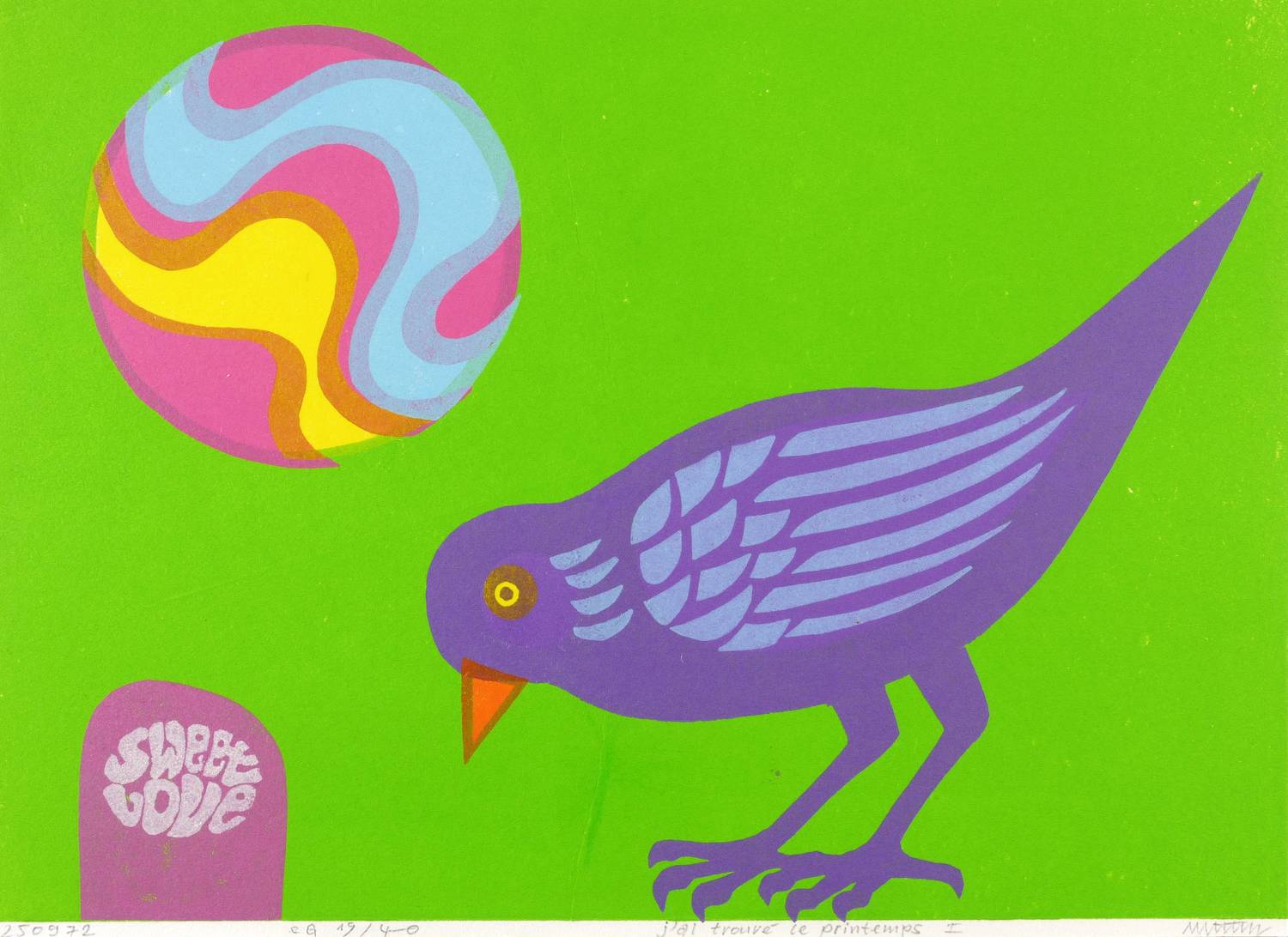 1972. Farblinolschnitt, in 5 Farben, auf rauem weißem Velin. – Originale Künstlergrafik, von Hanfried Schulz. – Auflage Exemplar Nr. 19/40. – 30,6 x 42,0 cm (Darstellung / Blatt).