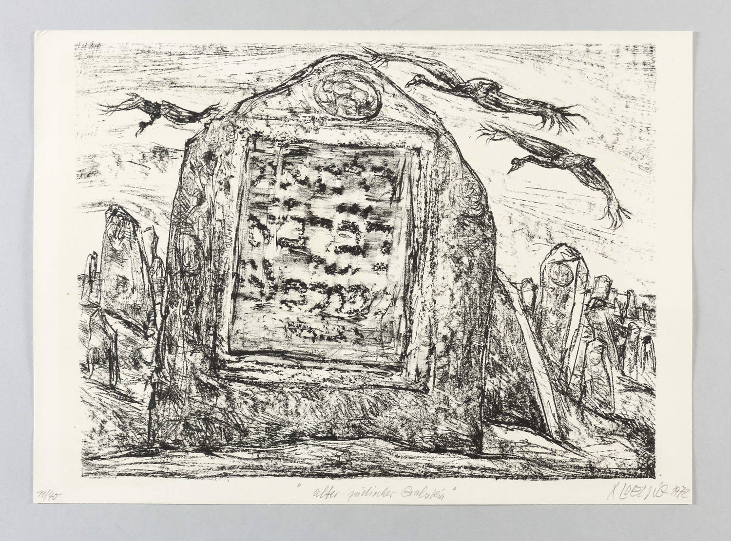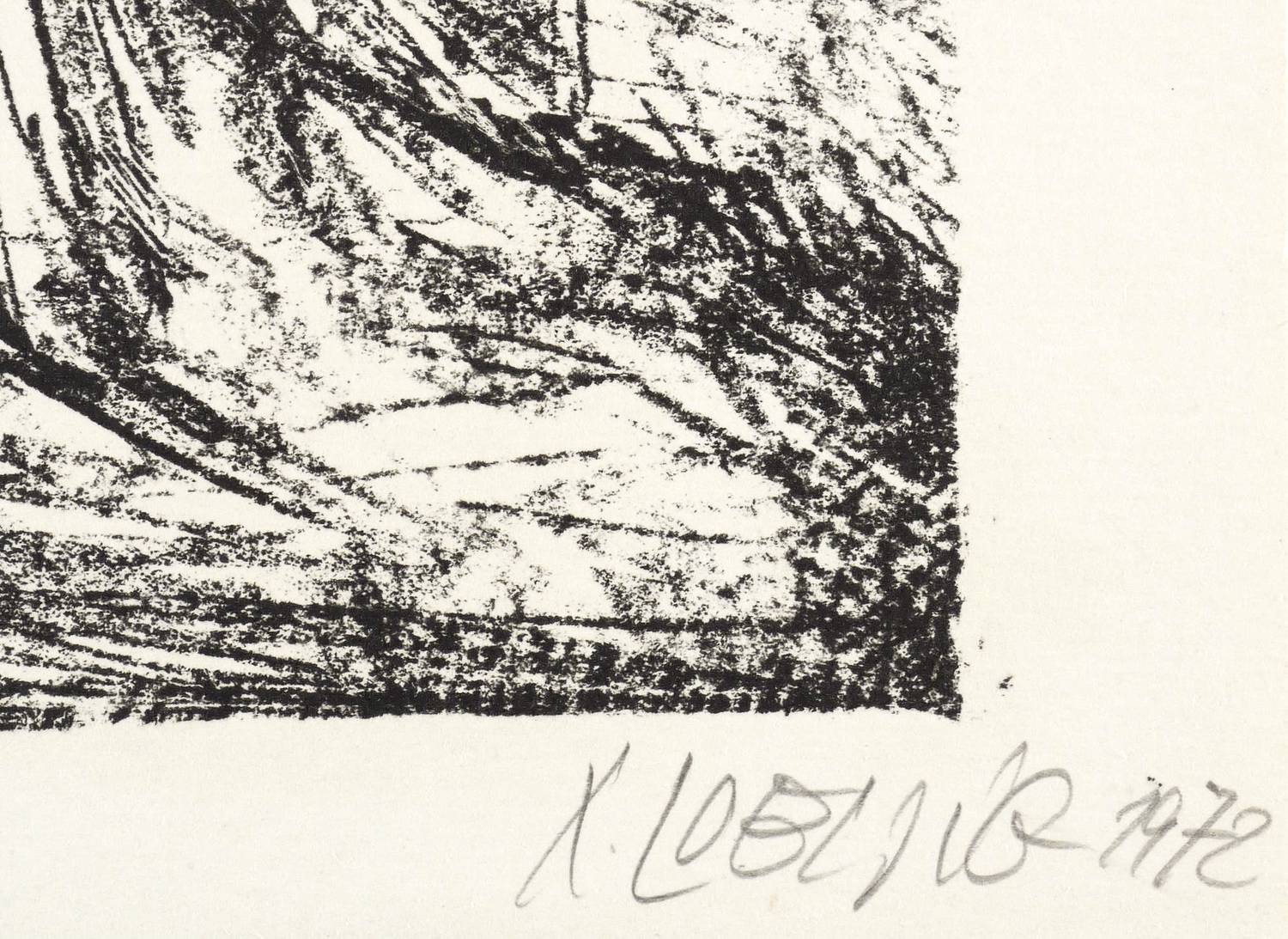 1972. Lithografie / Kreidelithografie, in Schwarz, auf hellgelbem Velinkarton. – Von Roger Loewig. – Auflage Exemplar 19/40. – 27,5 x 36,0 cm (Darstellung / Druckbild), 30 x 42 cm (Blatt).