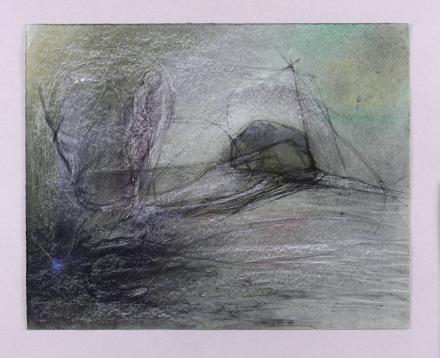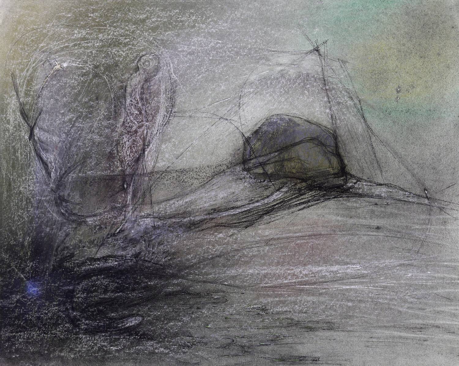 1984. Zeichnung / Kreidezeichnung, über aquarelliertem Grund, auf getöntem Karton. – Originale Künstlergrafik, von Gregor Torsten Kozik. – Unikat. – 32,6 x 40,8 cm (Darstellung / Blatt).