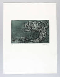 1964. Farbradierung / Aquatinta & Strichätzung, in Blaugrün & Schwarz, auf hellchamois Velinkarton. – Originale Künstlergrafik, von Ernst Wolfhagen. – Auflage Exemplar Nr. 5/10. – 18,9 x 30,6 cm (Darstellung / Platte), 57 x 43 cm (Blatt).