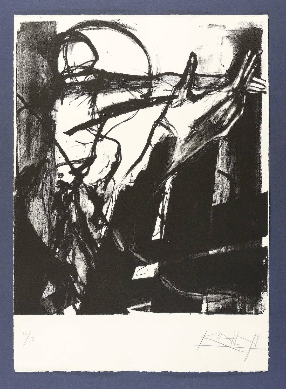 1984. Lithografie / Pinsellithografie, in Schwarz, auf schwerem hellchamois Hahnemühle-Bütten. – Von Gregor Torsten Kozik. – Auflage Exemplar Nr. 13/50. – 46,5 x 39,9 cm (Darstellung), 56 x 40 cm (Blatt).