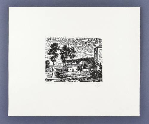 1988. Holzschnitt, in Schwarz, auf hellem Maschinenbütten. – Originale Künstlergrafik, von Willy Wolff. – 15,3 x 19,8 cm (Darstellung / Druckstock), 38 x 46 cm (Blatt).