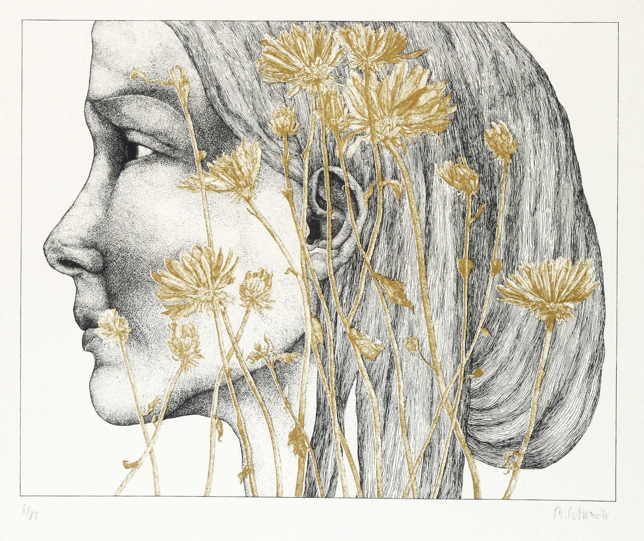 Schwarz, Reiner. – „Mädchen mit Kornblumen”.