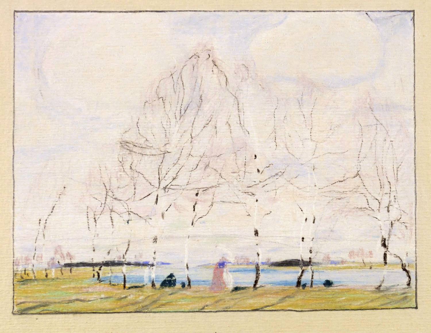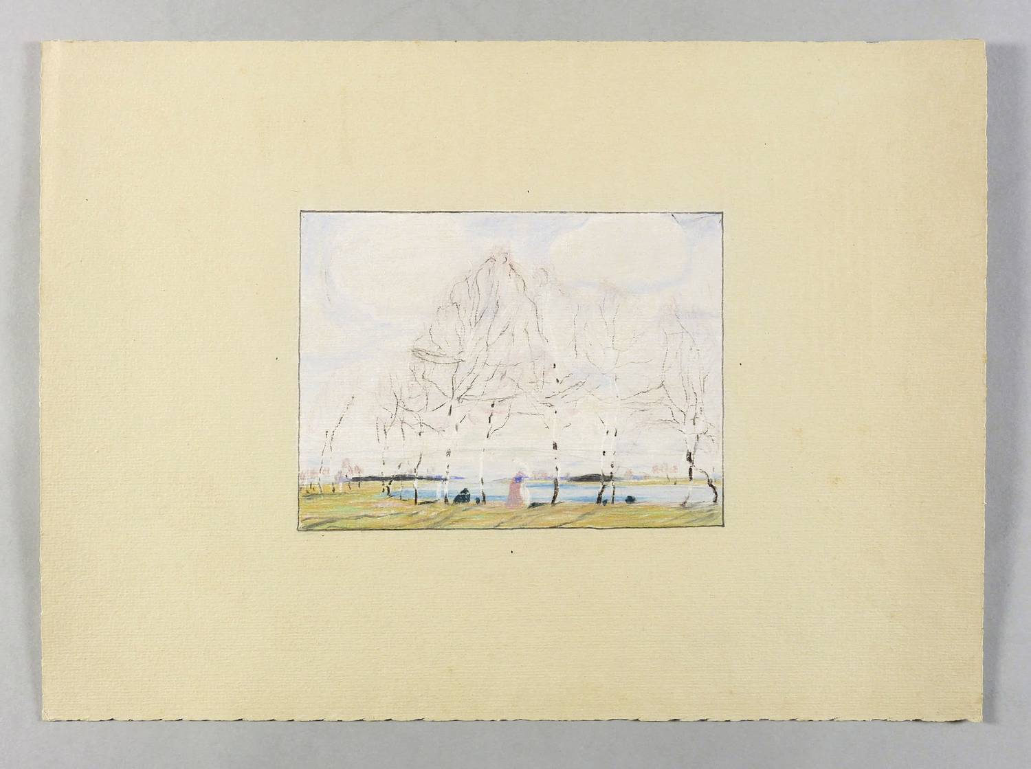 1906. Zeichnung / Pastellkreide, auf gelbem Karton. – Originale Künstlergrafik, von Leopold Jülich. – Unikat. – 14,3 x 19,0 cm (Darstellung), 31 x 42 cm (Blatt).