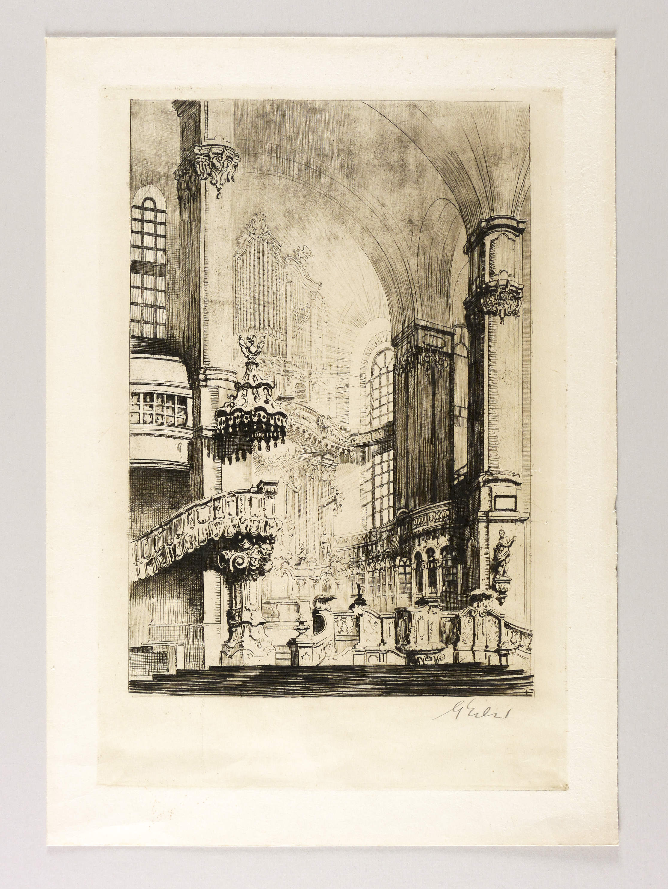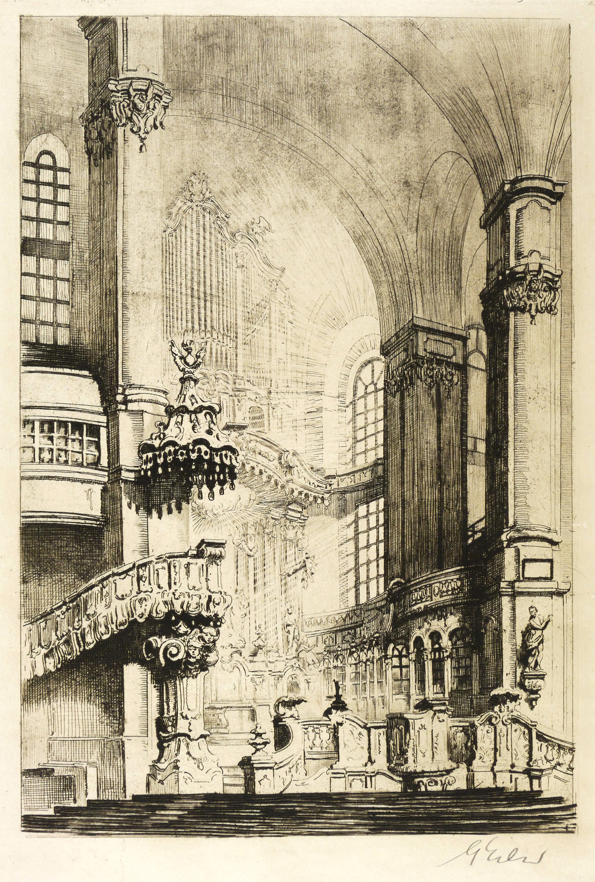 Erler, Georg. – „Frauenkirche Dresden (Innenansicht mit Altar und Orgelprospekt)”.
