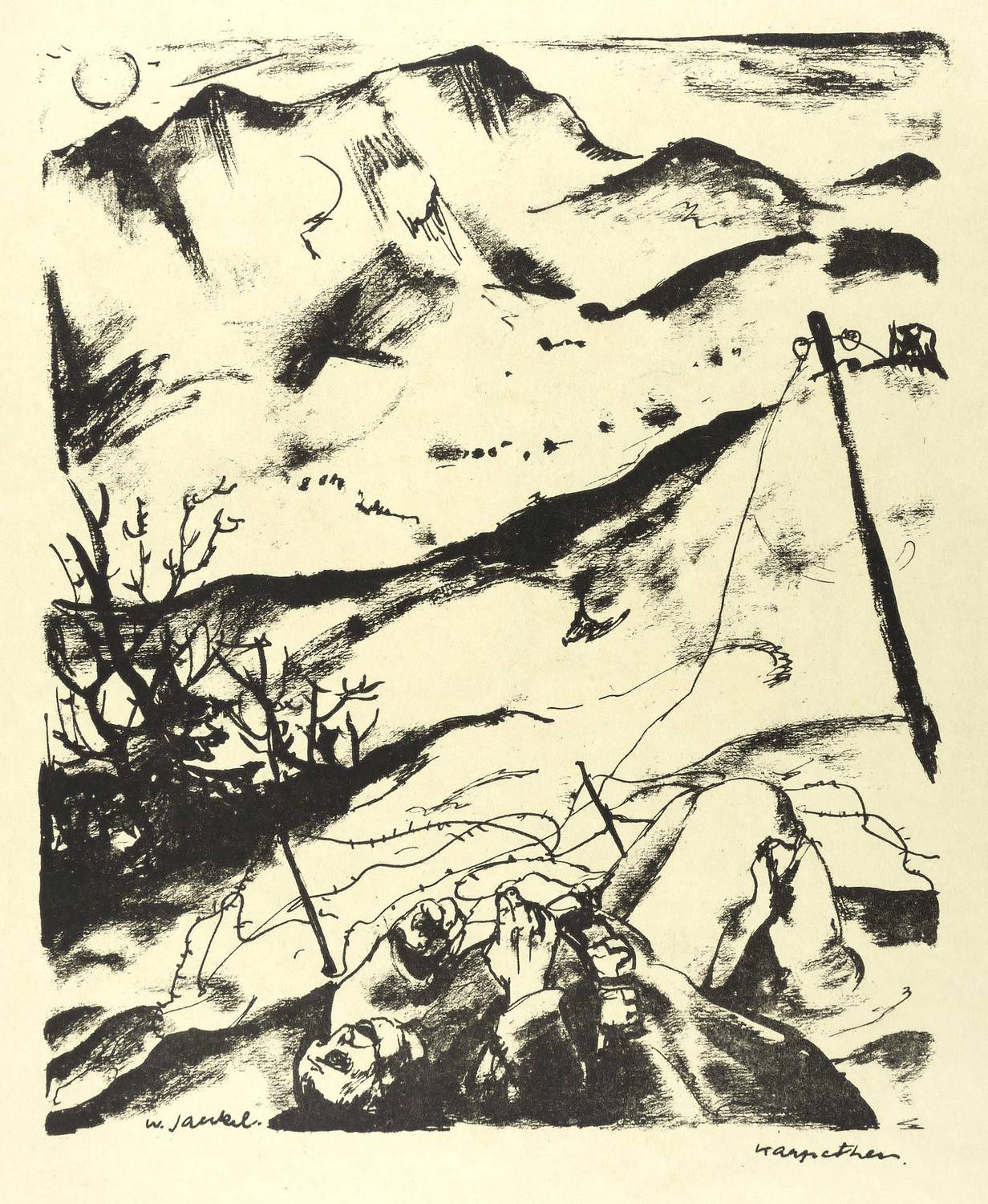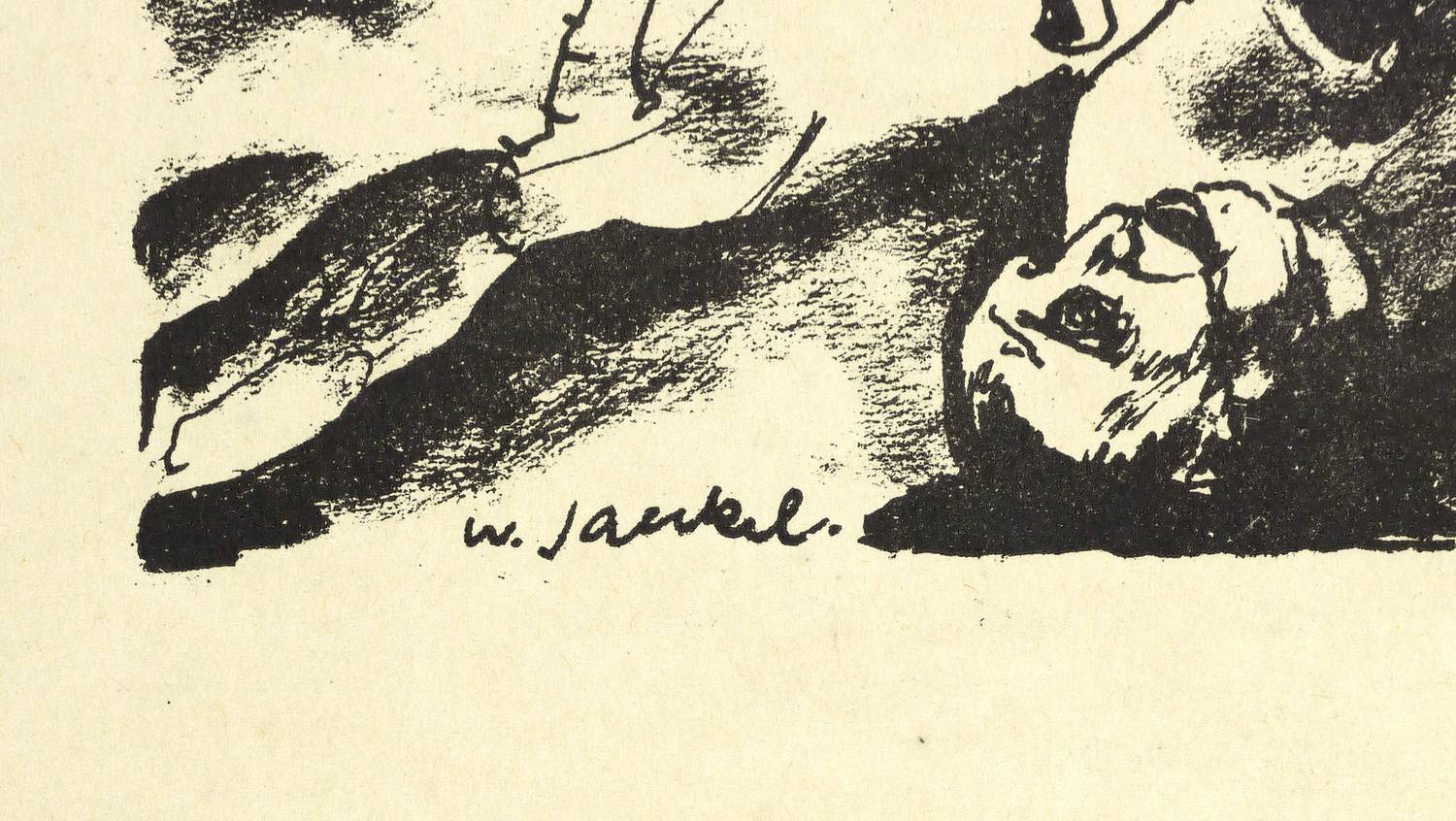 1915. Lithografie / Pinsel- und Federlithografie, in Schwarz, auf gelbem Maschinenpapier. – Originale Künstlergrafik, von Willy Jaeckel. – 29,6 x 24,5 cm (Darstellung), 48 x 32 cm (Blatt).