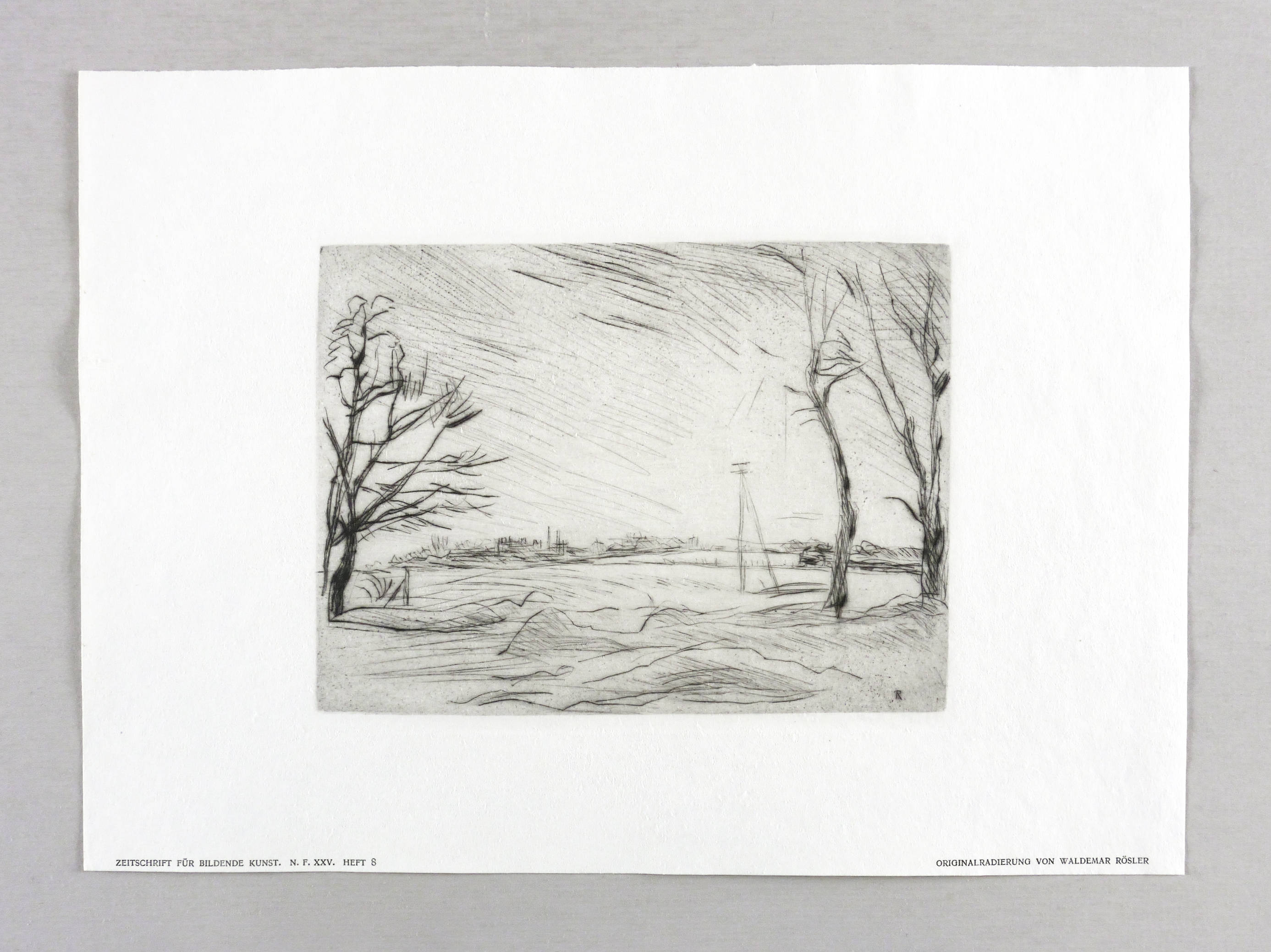 Aus: Zeitschrift für bildende Kunst (Leipzig: E.A. Seemann 1914), Bd. 25. – Nicht handsigniert. Unterhalb der Darstellung rechts typografisch bezeichnet: ″ORIGINALRADIERUNG VON WALDEMAR RÖSLER″. Links Bandangabe. – Sehr guter Zustand.
