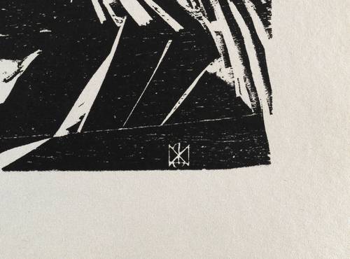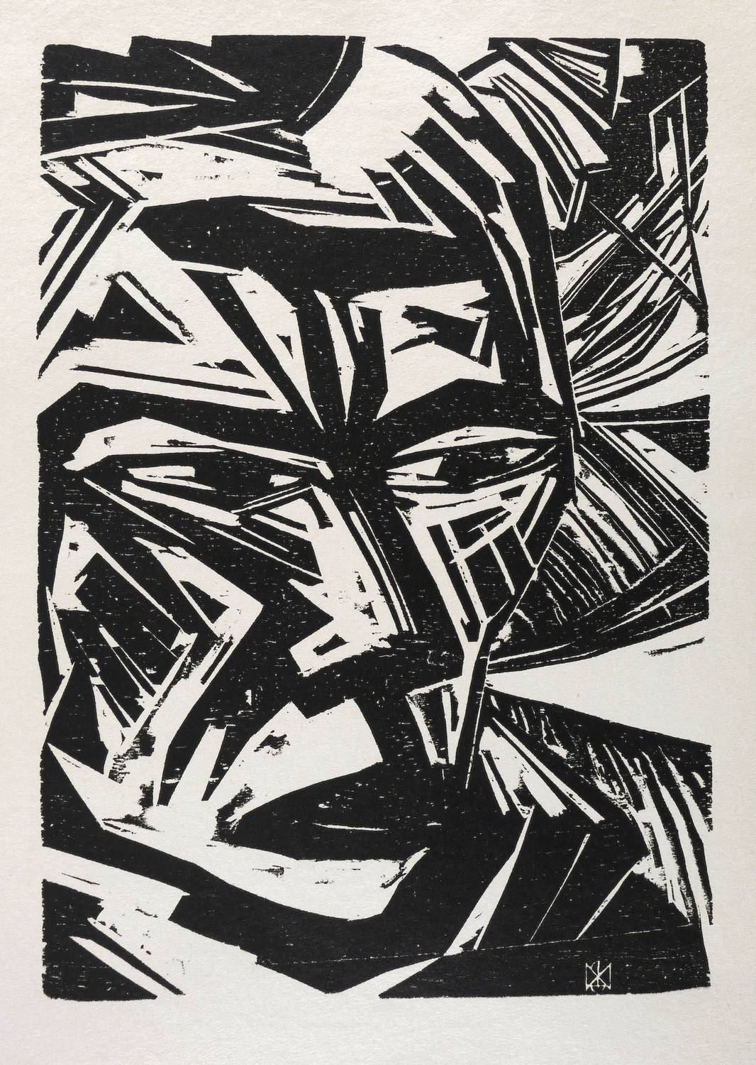 1920. Holzschnitt, in Schwarz, auf grobem gelbem Maschinenpapier. – Originale Künstlergrafik, von Max Kaus. – 28,8 x 20,1 cm (Darstellung / Druckstock), 35 x 25 cm (Blatt).