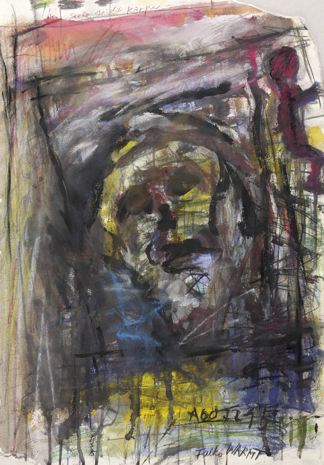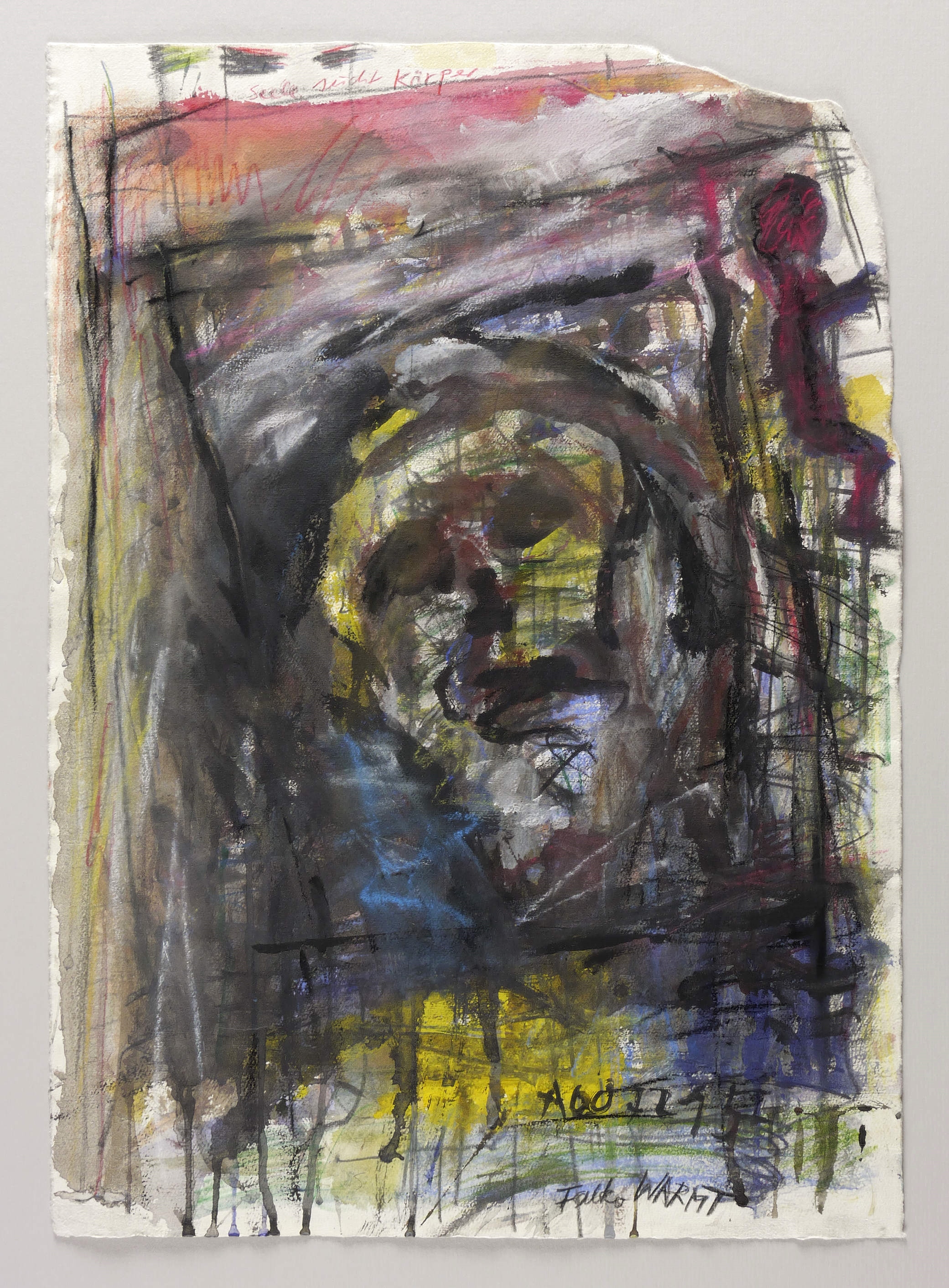Rechts unten in Graphit signiert: ″Falko WARMT″. Darüber in schwarzer Tusche nummeriert: ″A007295″. Am oberen Rand der Darstellung in rotem Farbstift: ″Seele sucht Körper″. Verso in Bleistift bezeichnet: ″F.W. / 1230″. Wasserzeichen. – Die reduzierte Blattecke rechts oben original bzw. werkimmanent. Sehr gut erhaltenes Exemplar.