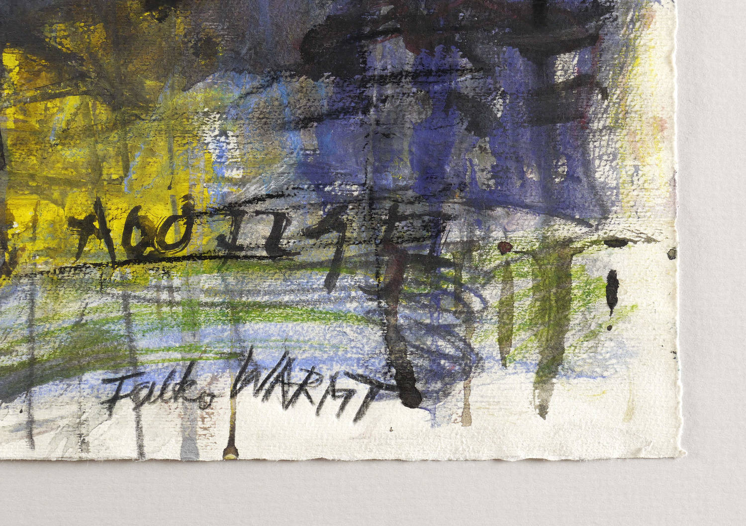 Falko Warmt (*1938 Gera, lebt und arbeitet in Berlin). Deutscher Bildhauer, Maler und Grafiker. In Weimar aufgewachsen, begann er 1955 autodidaktisch mit Malerei. Später Schüler von Otto Müller in Halle an der Saale. Ausbildung zum chemnischen Ingenieur in Halle. Seit 1978 freischaffend in Berlin. 1987 erste Einzelausstellung in der Galerie Unter den Linden in Berlin. Ab 1988 Arbeitsaufenthalte in Frankfurt am Main und in London. Es entstanden großformatige Collagen und Materialbilder aus Japanpapier. 1990-95 Studienaufenthalte in Kapstadt, Südafrika. Ab 2000 Öl- und Materialbiderserie "Argos" und Eisenplastiken "Janusköpfe". 2003 großformatige Bildserie "P.S. Eilbriefe".