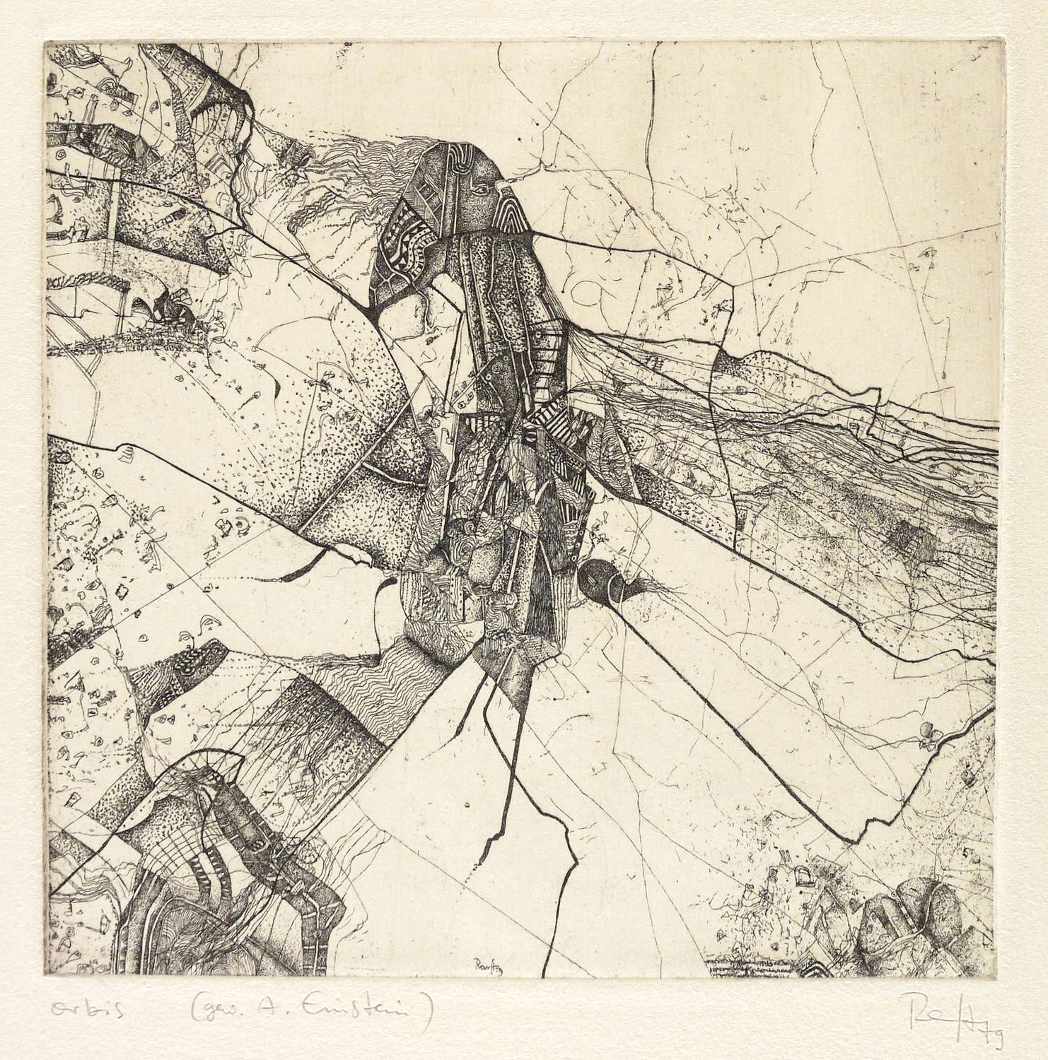 Rechts unten in Bleistift signiert und datiert ″Ranft 79″. Links Titel: ″Orbis (gew. A. Einstein)″. In der Platte am unteren Rand Signatur und Jahr: ″Ranft 79″. – Sehr guter Zustand.