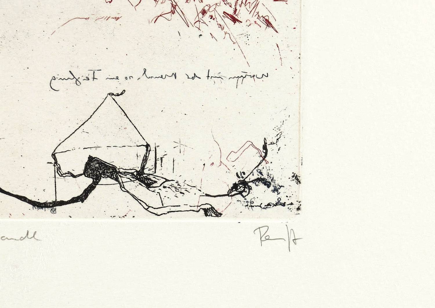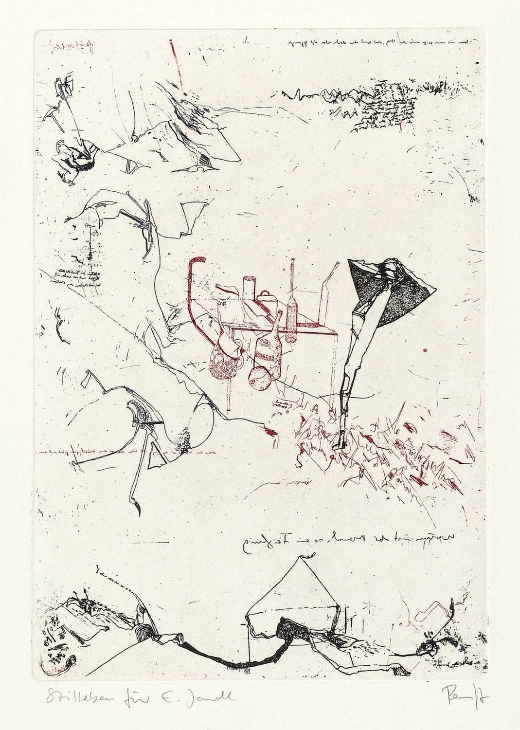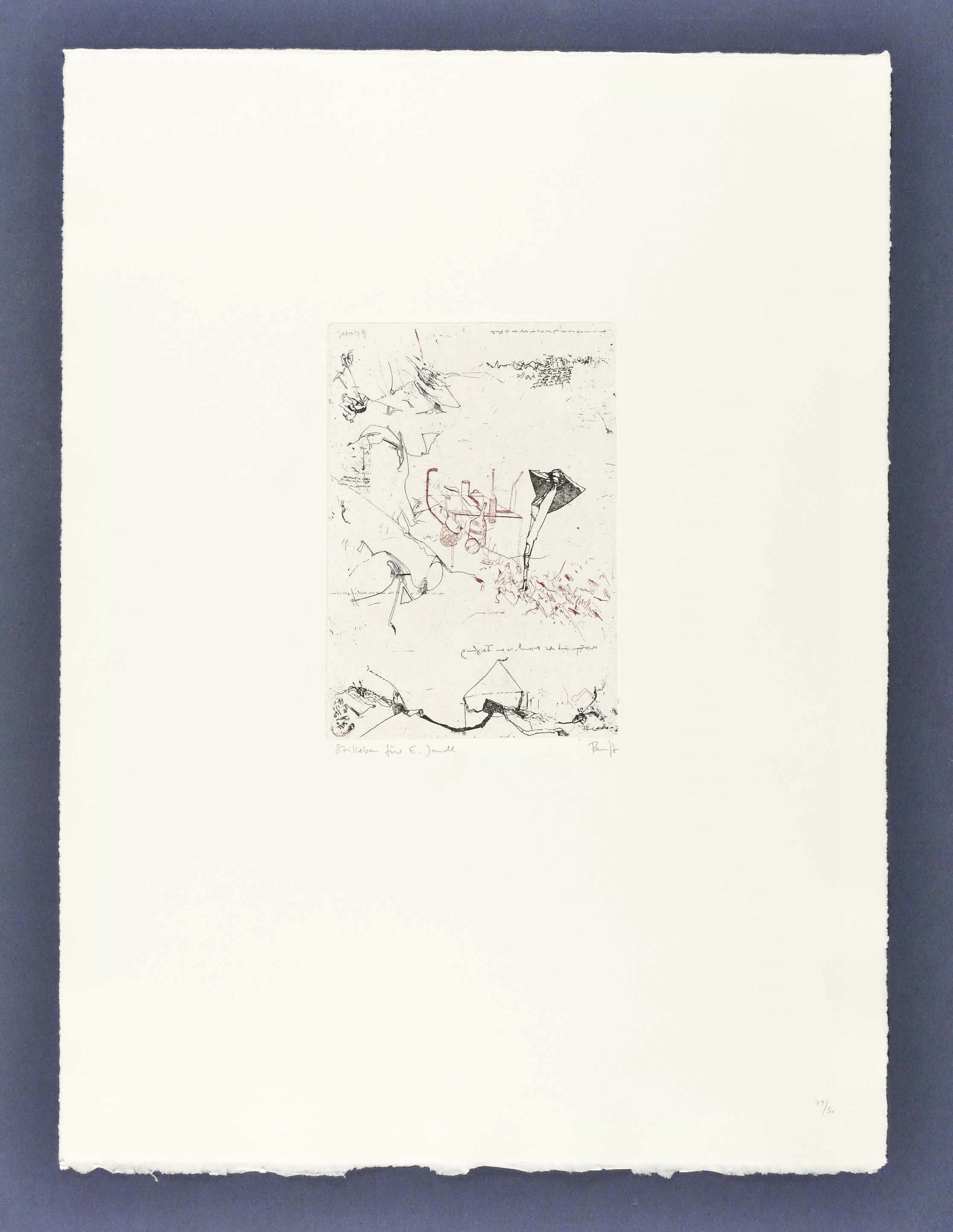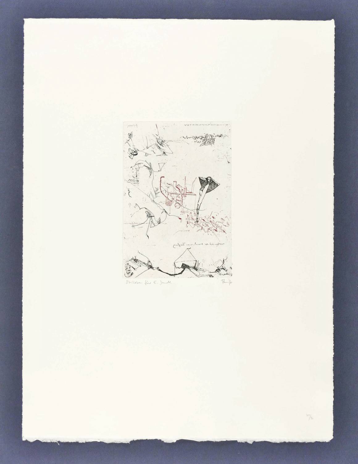 1989. Farbradierung / Strichätzung, in Rot & Schwarz, auf Hahnemühle-Büttenkarton. – Originale Künstlergrafik, von Thomas Ranft. – Auflage Exemplar Nr. 49/50. – 19,8 x 13,8 cm (Darstellung / Platte), 54 x 40 cm (Blatt).