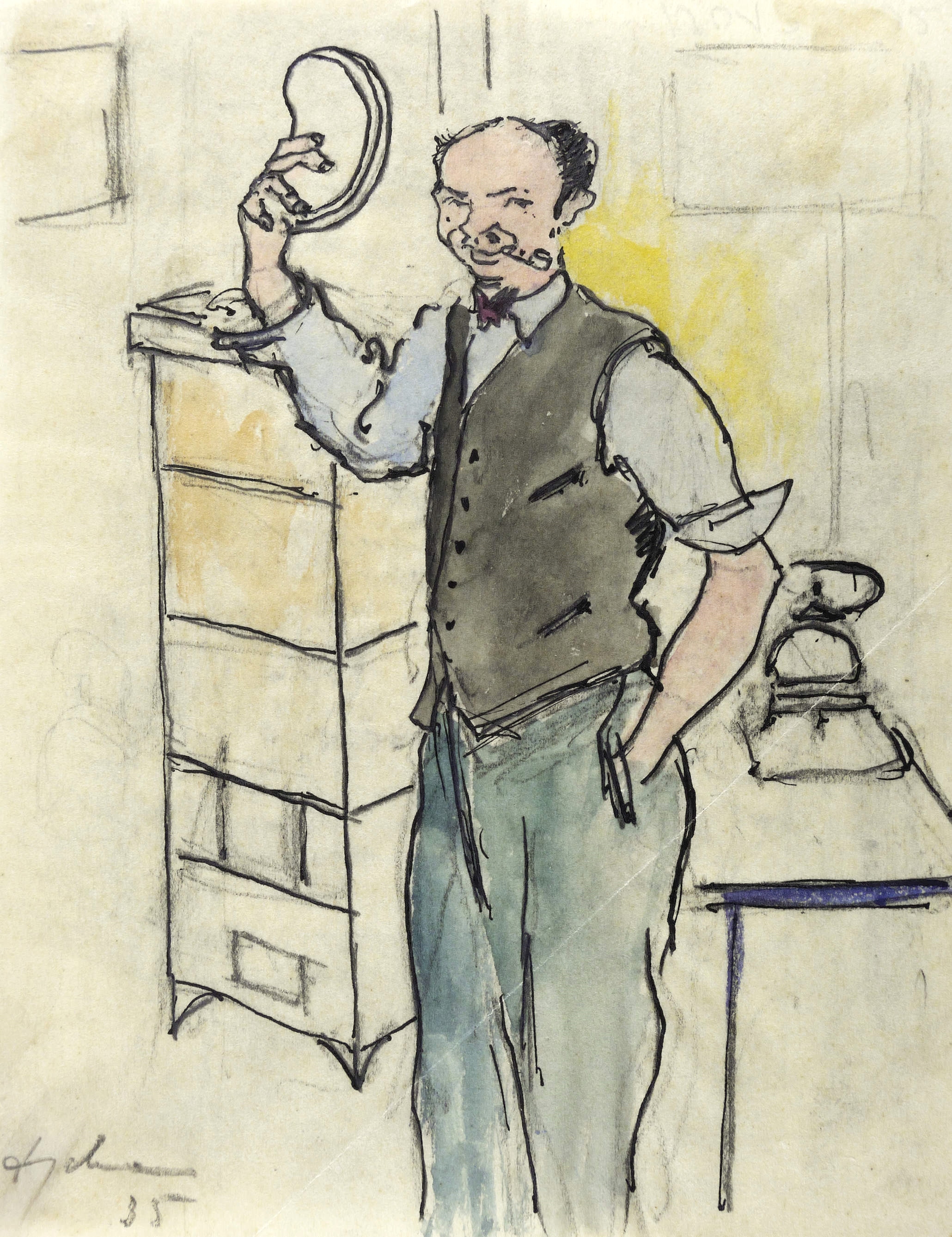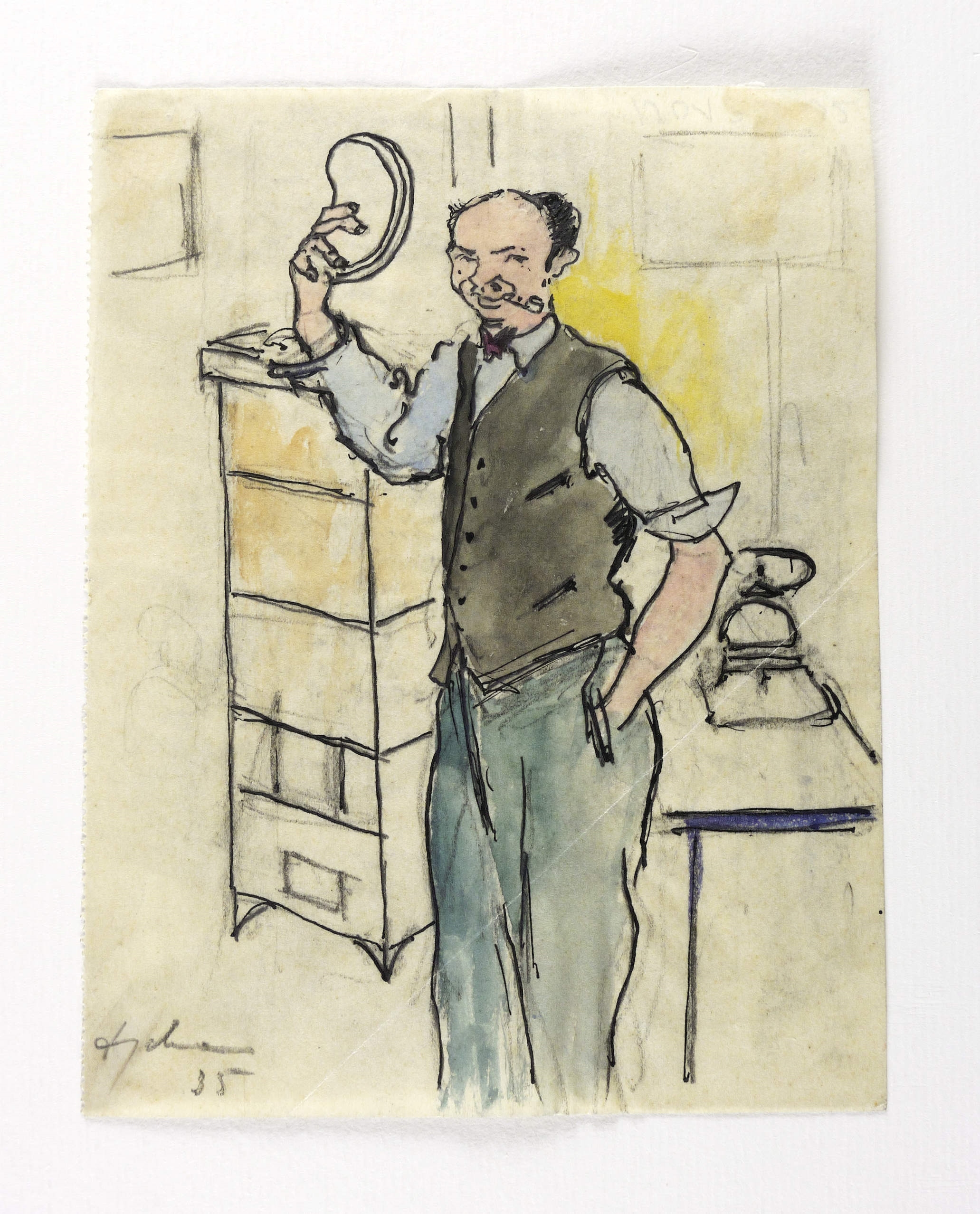 1935. Zeichnung / Feder, in schwarzer Tusche, über Bleistift, aquarelliert, auf Transparentpapier. – Originale Künstlergrafik, von Wilhelm Engelmann. – Unikat. – 15,0 x 11,5 cm (Darstellung / Blatt).