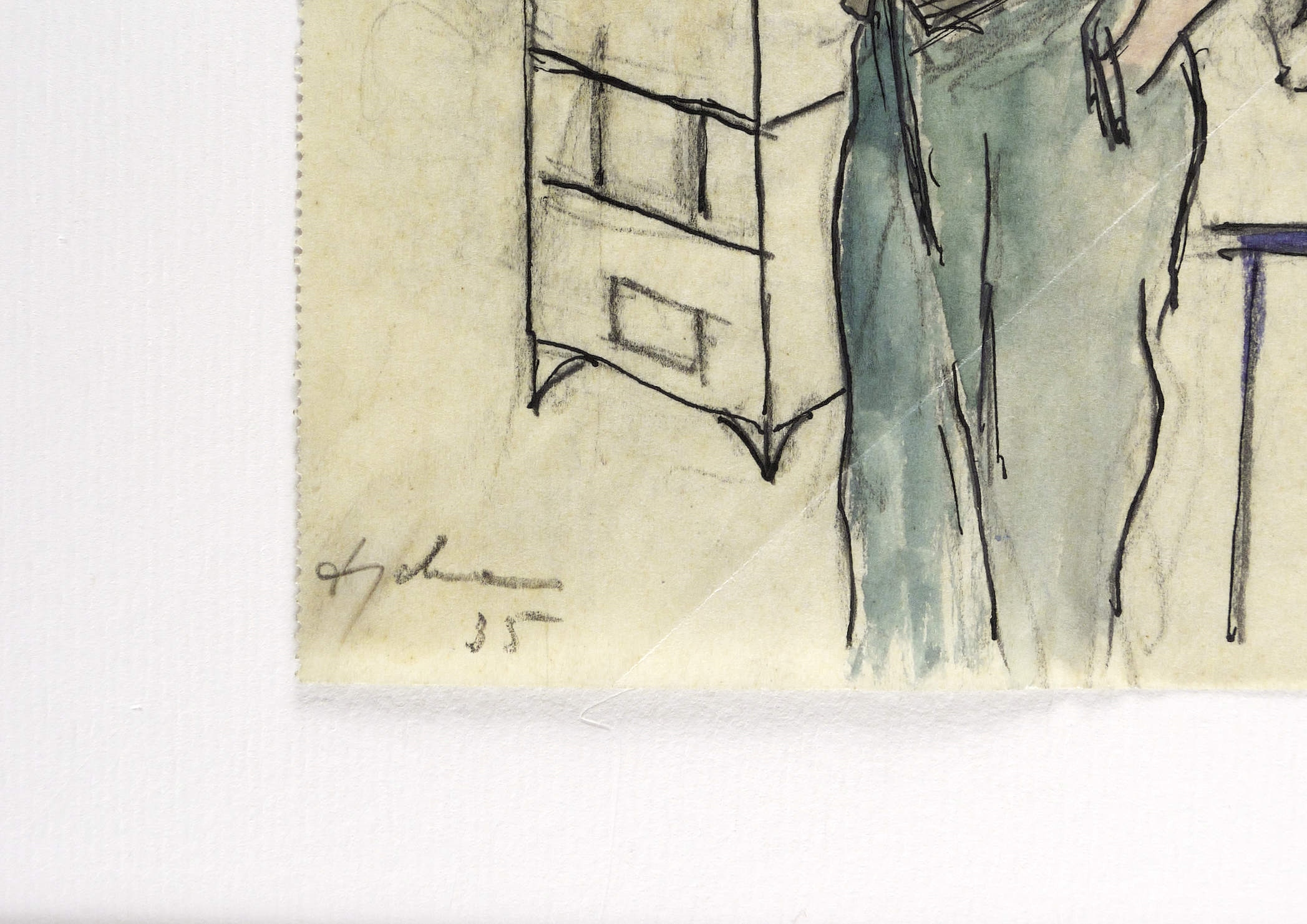 Links unten in Bleistift signiert und datiert: ″Engelmann 35″. – Rückseitig in den oberen Ecken Montagereste. Rechts unten ausgelegene Diagonalfalte. Mäßig guter Zustand.