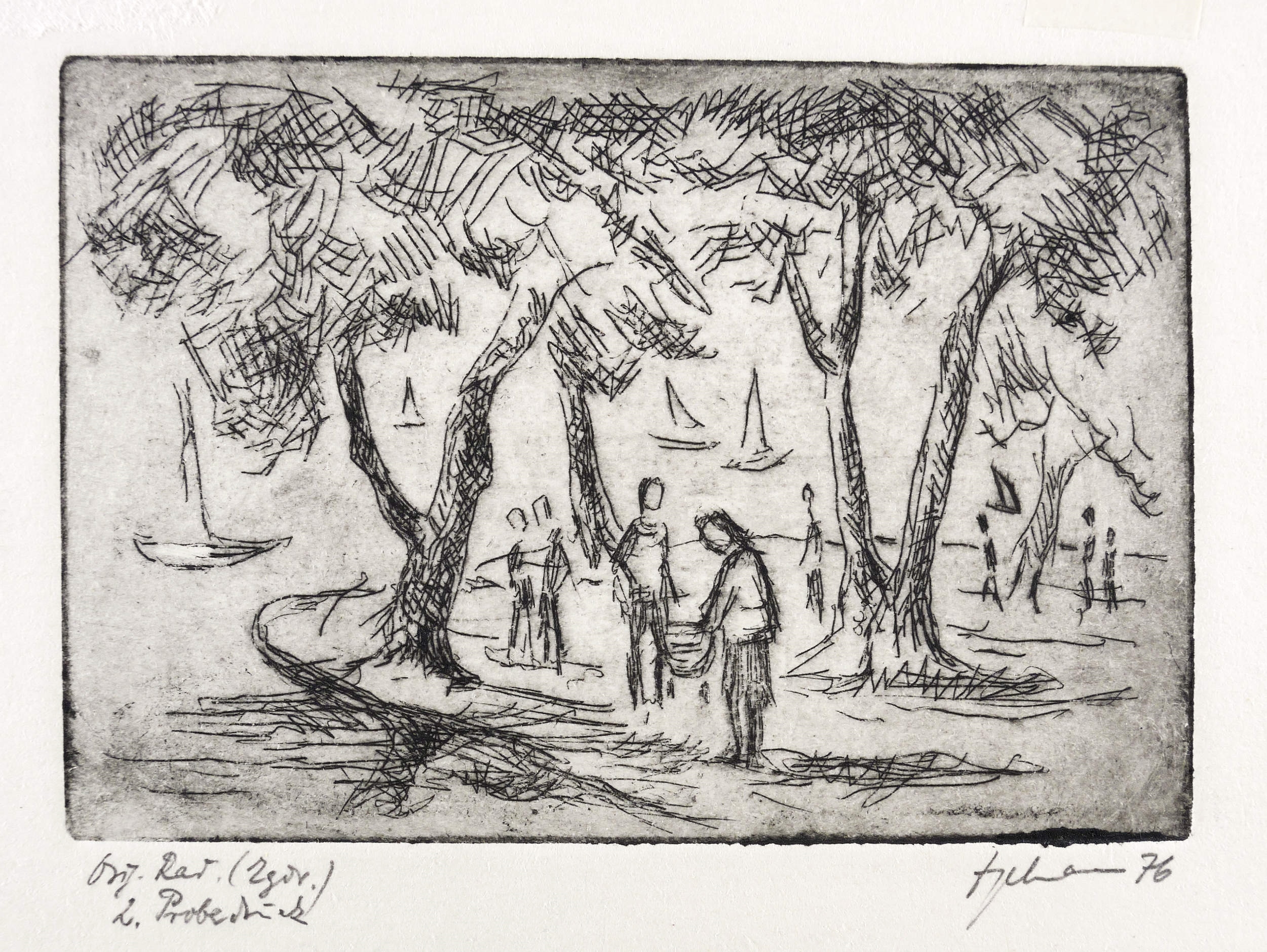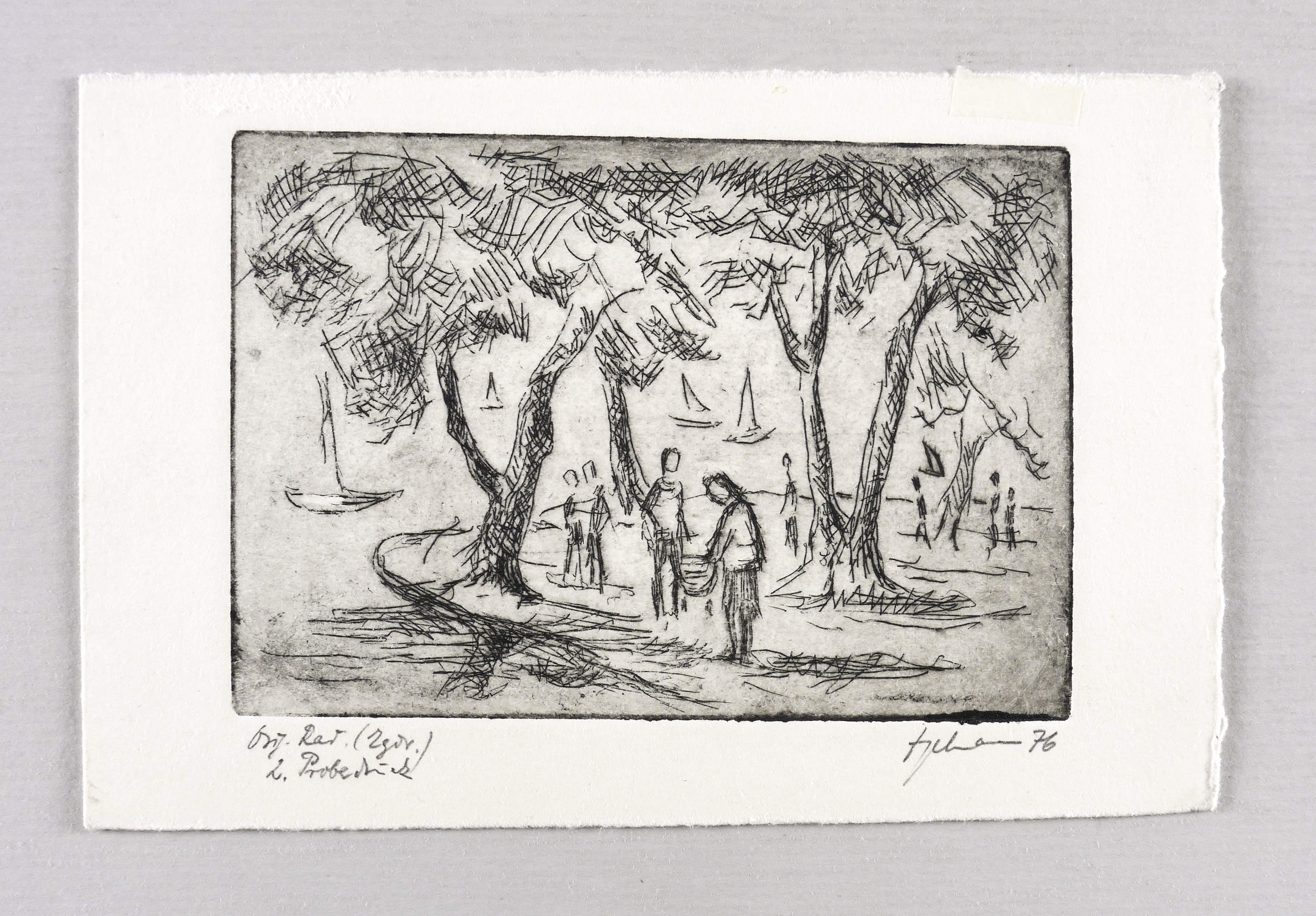 Rechts unten in Bleistift signiert und datiert: ″Engelmann 76″. Links bezeichnet: ″Orig. Rad. (Egdr.) 2. Probedruck″ – Eigener Handabzug des Künstlers. – Sehr guter Zustand.
