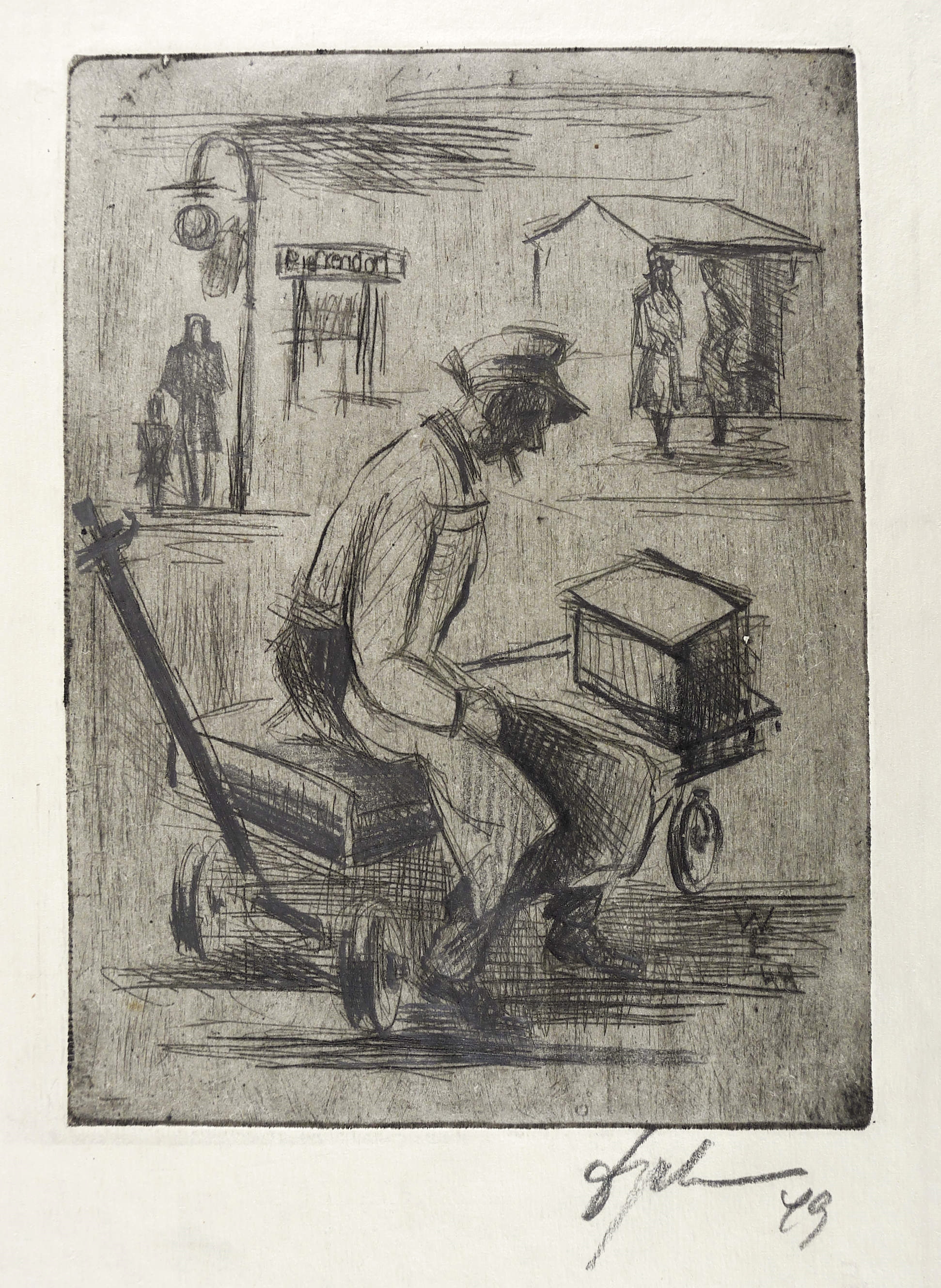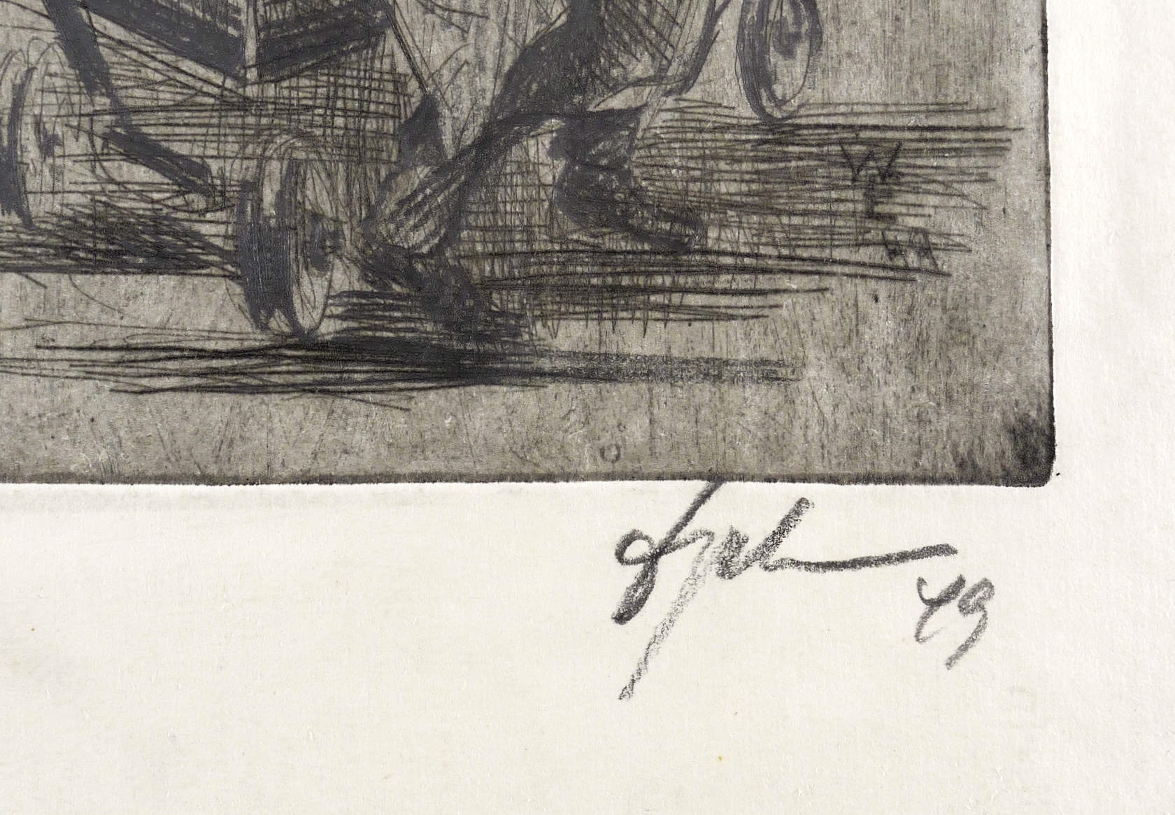Rechts unten in Bleistift signiert und datiert: ″Engelmann 49″. In der Platte rechts unten Monogramm und Jahr: ″WE 49″. – Probedruck mit zahlreichen Änderungen und Korrekturen in Bleistift. – Guter Zustand.