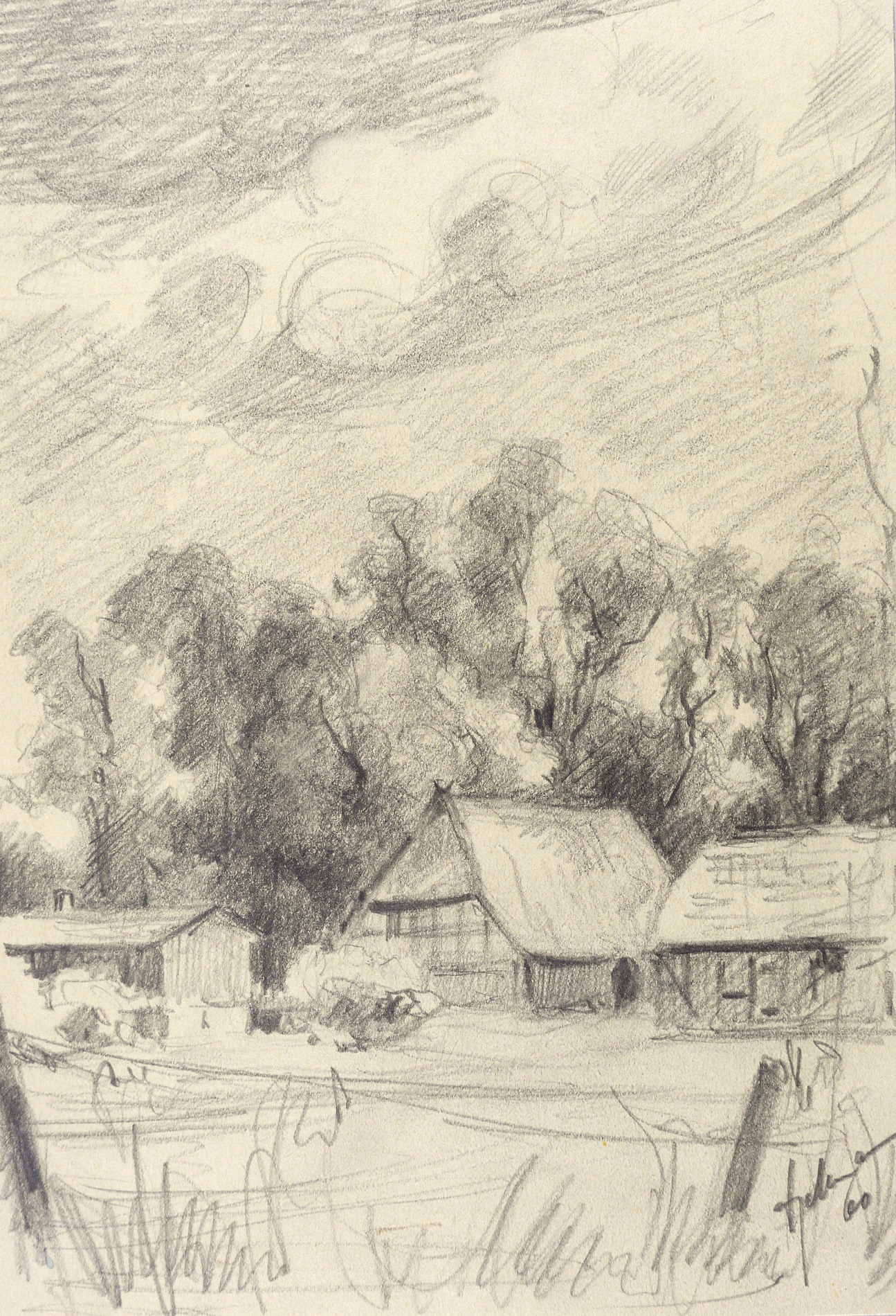 1960. Zeichnung / Graphit, auf gelbem Maschinenpapier. – Originale Künstlergrafik, von Wilhelm Engelmann. – Unikat. – 25,8 x 17,7 cm (Darstellung / Blatt).