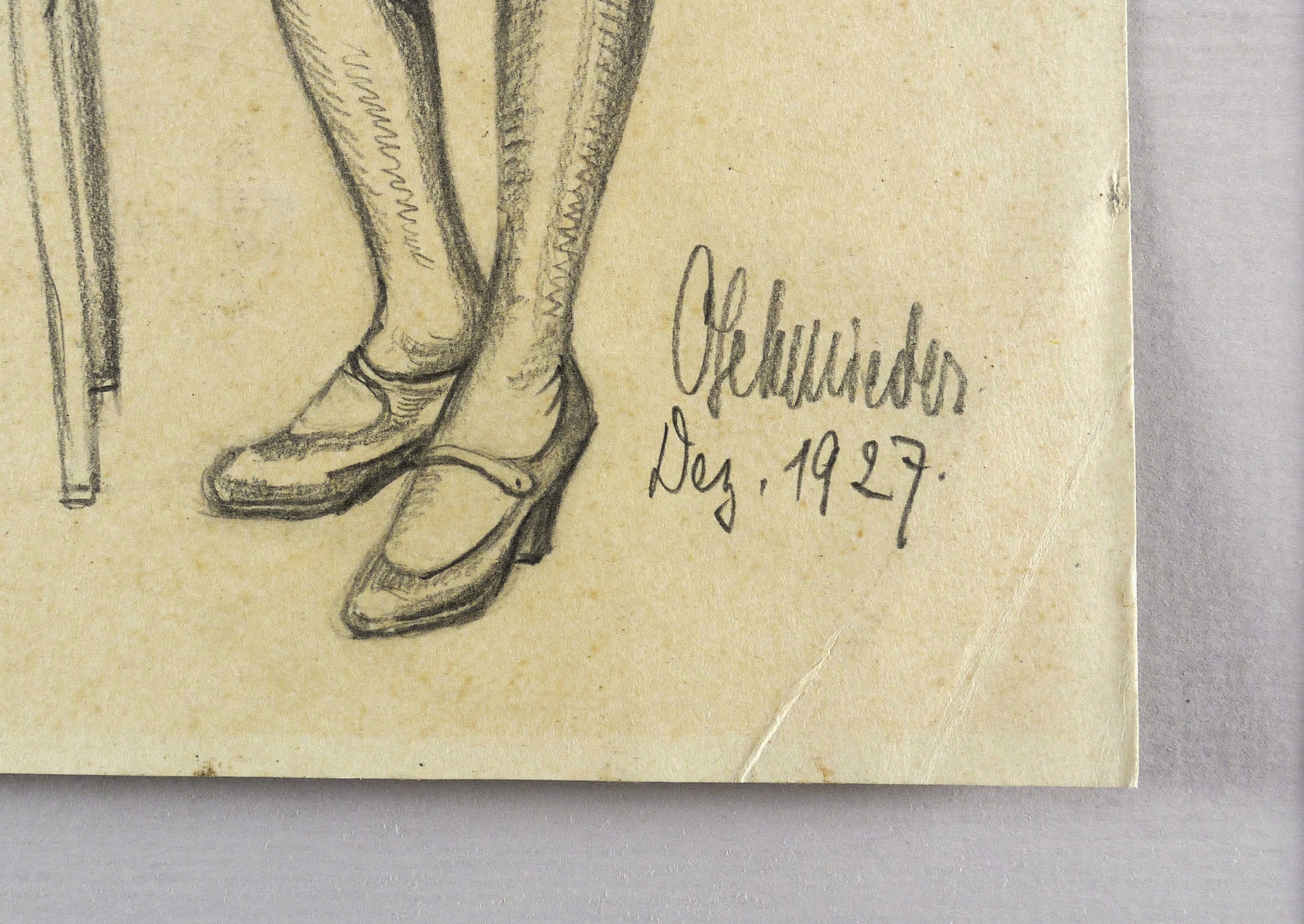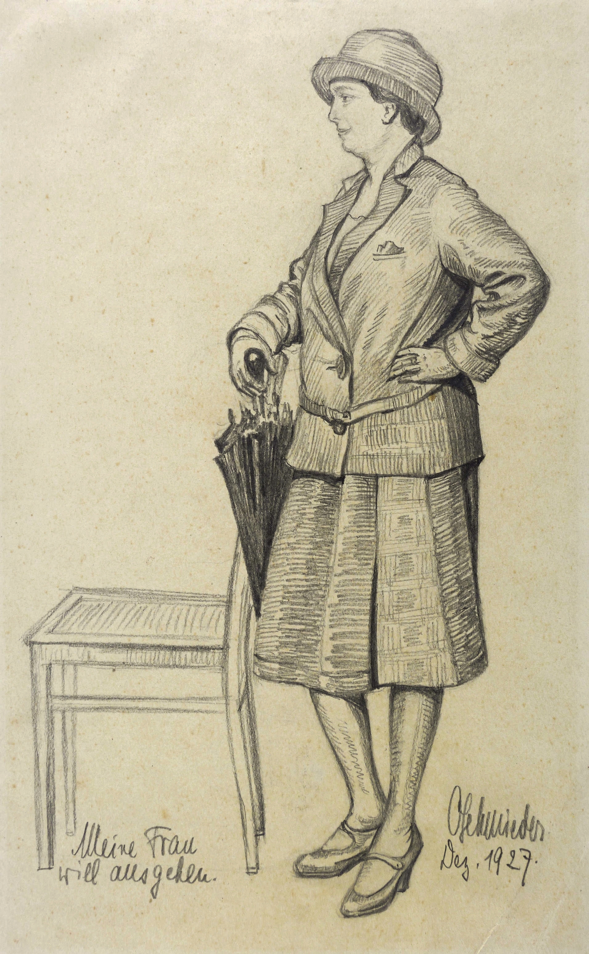 Rechts unten in Bleistift signiert und datiert: ″OSchmieder Dez. 1927.″ Links bezeichnet: ″Meine Frau will ausgehen.″ – Sehr guter Zustand.