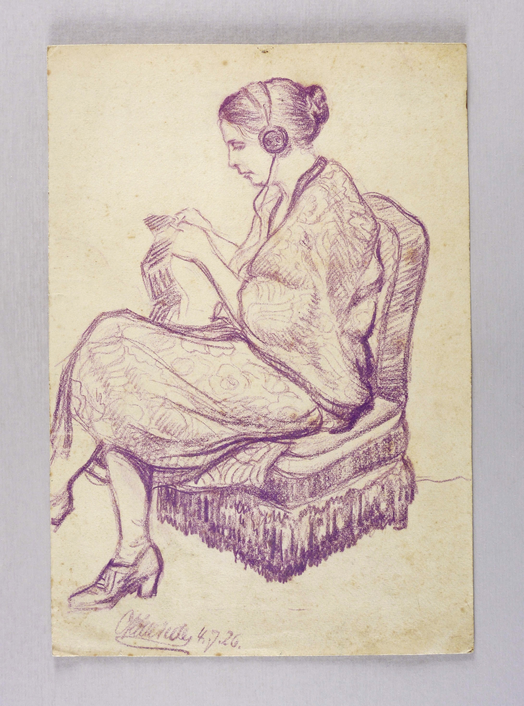 1926. Zeichnung / Farbkreide, in Violett, auf gelbem Velin. – Originale Künstlergrafik, von Otto Schmieder. – Unikat. – 31,2 x 21,5 cm (Darstellung / Blatt).