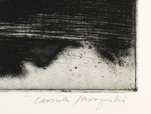 1980-1990. Radierung / Kaltnadel, in Schwarz, mit Plattenton, auf hellchamois Velin. – Originale Künstlergrafik, von Ursula Strozynski. – Auflage Exemplar Nr. 7/25. – 31,2 x 27,7 cm (Darstellung / Platte), 46 x 39 cm (Blatt).
