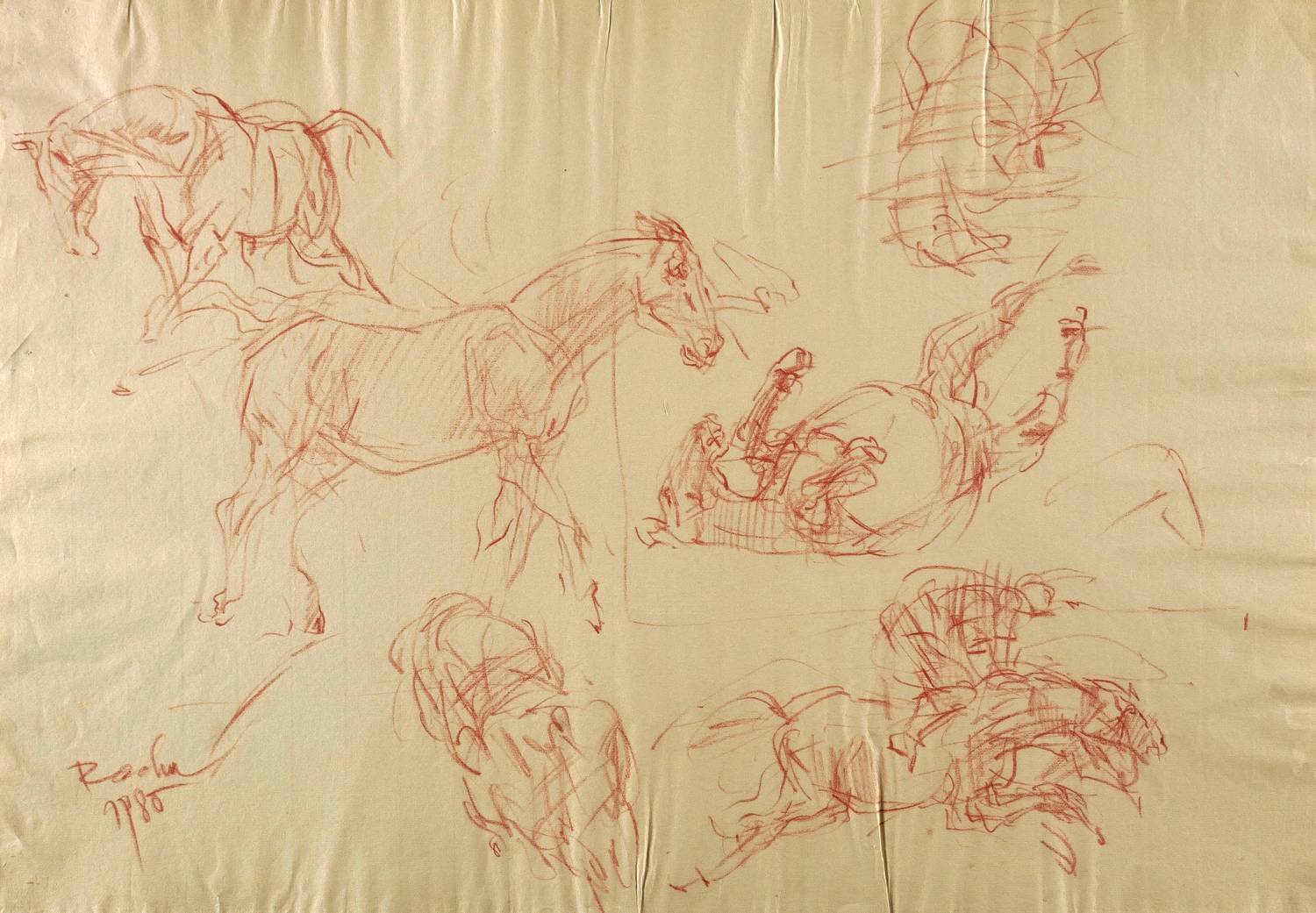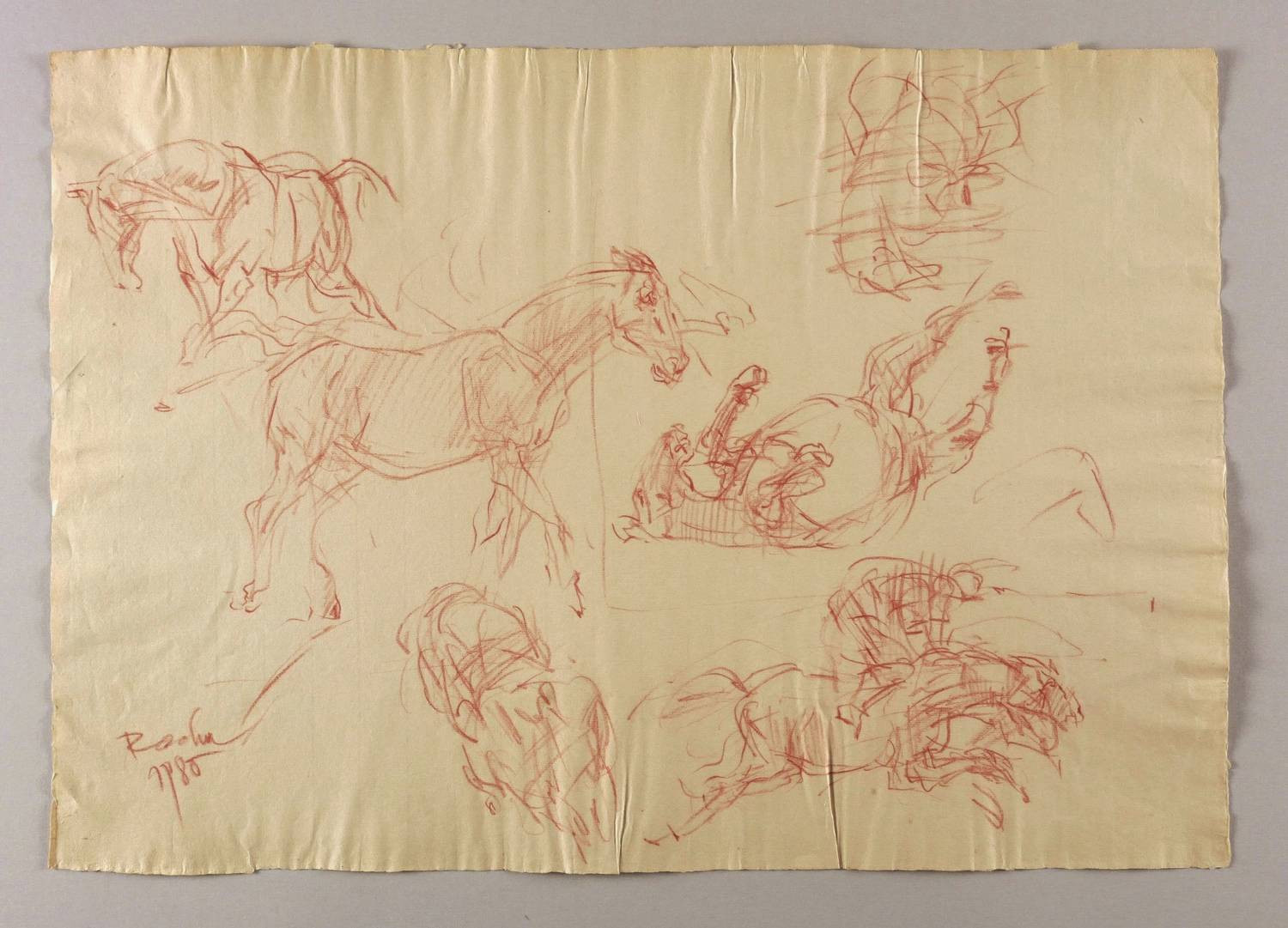 1985. Zeichnung / Rötelkreide, auf rauem gelbem Losin-Bütten. – Von Günther Rechn. – 42,0 x 59,0 cm (Darstellung / Blatt).