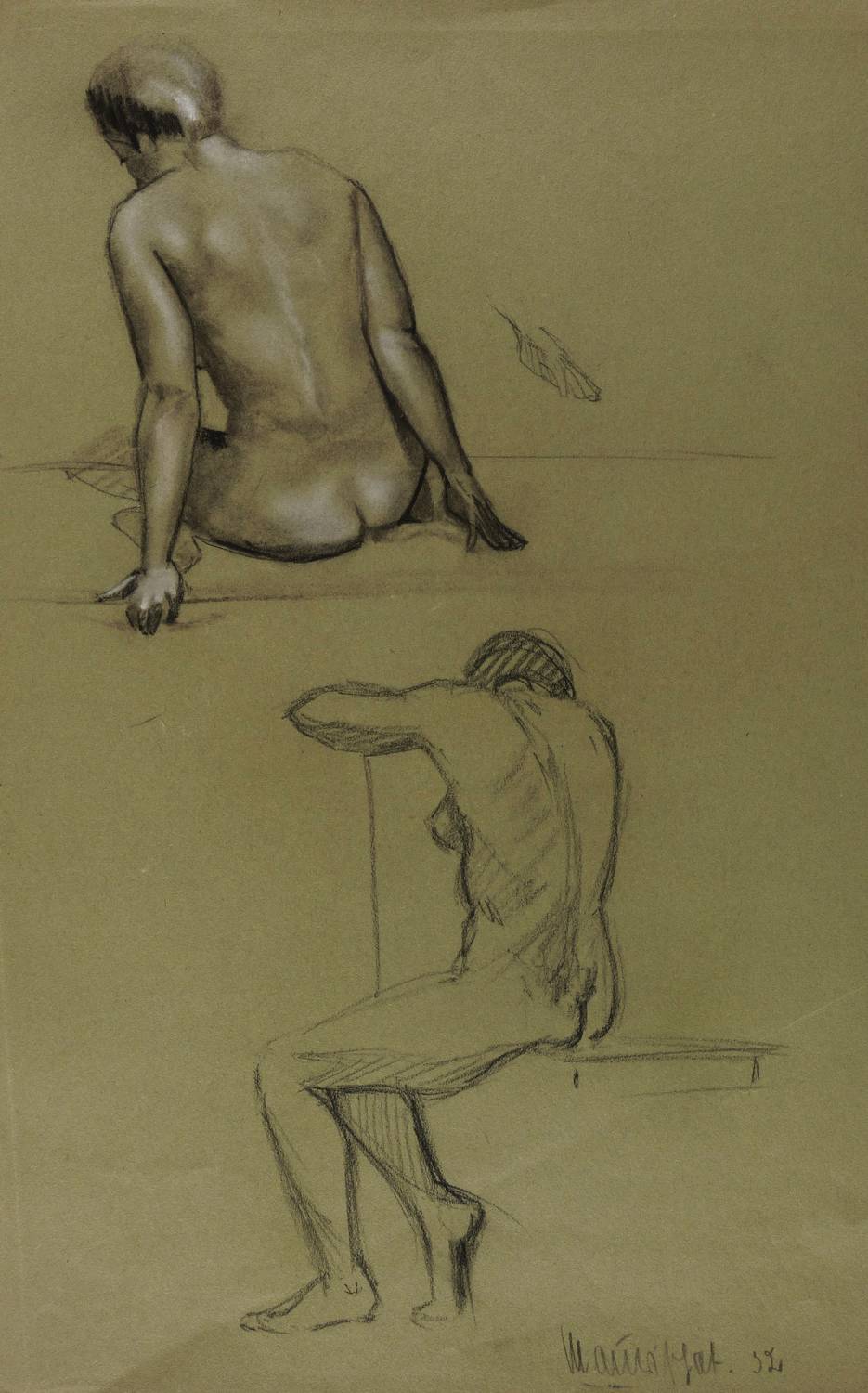 Rechts unten in schwarzer Kreide signiert und datiert: ″Maurischat 32″. – Leichte Atelierspuren. Wenige ausgelegene Knickfalten. Guter Zustand.