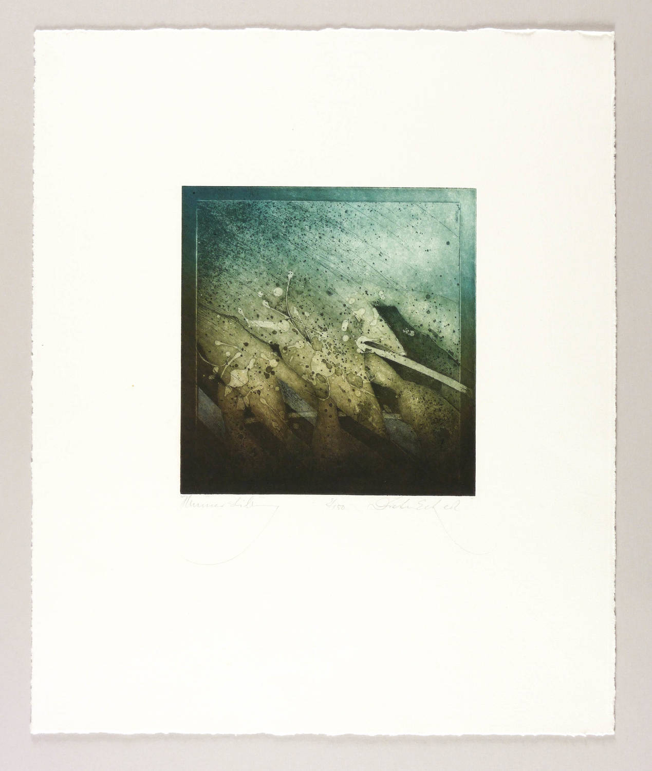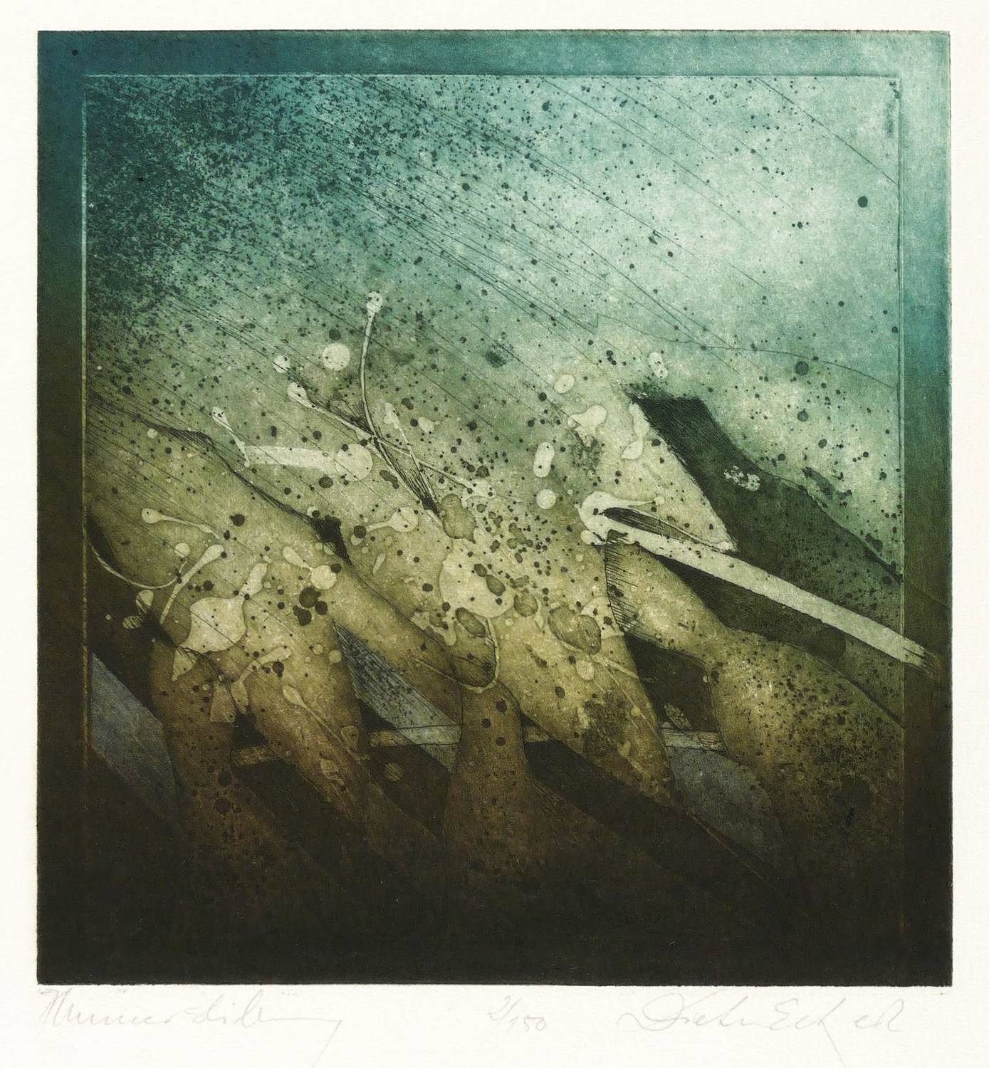 1980-1989. Farbradierung / Aquatinta, in Blaugrün & Schwarz, auf chamois Velinkarton. – Originale Künstlergrafik, von Dieter Eckert. – Auflage Exemplar Nr. 2/150. – 20,8 x 20,0 cm (Darstellung / Platte), 48 x 40 cm (Blatt).