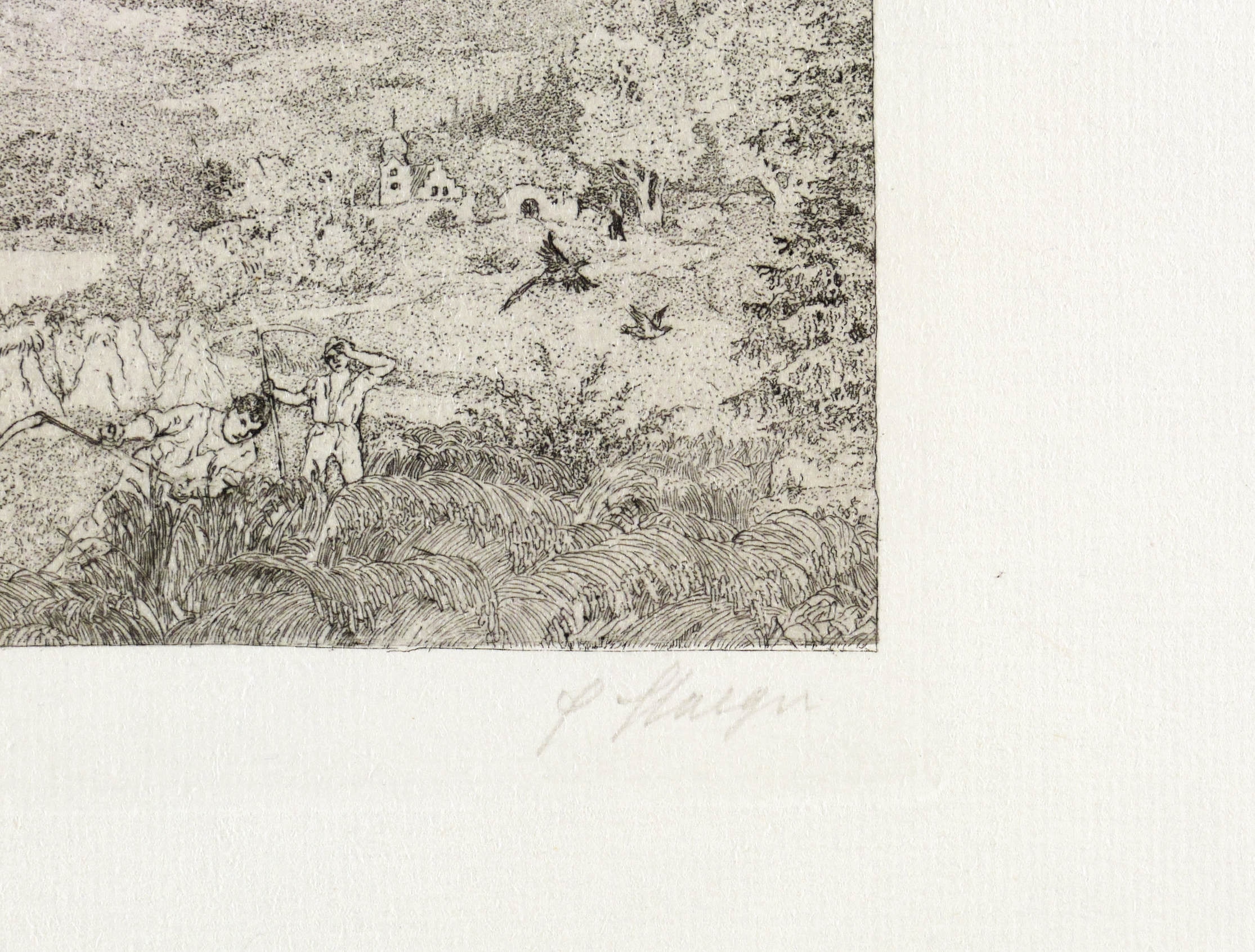 1920. Radierung / Strichätzung, Aquatinta & Kaltnadel, in Schwarz, mit Plattenton, auf Van-Gelder-Zonen-Bütten. – Originale Künstlergrafik, von Ferdinand Staeger. – Auflage Exemplar Nr. 82/100. – 31,2 x 21,7 cm (Darstellung / Einfassungslinie), 33,3 x 23,2 cm (Platte), 52 x 39 cm (Blatt).