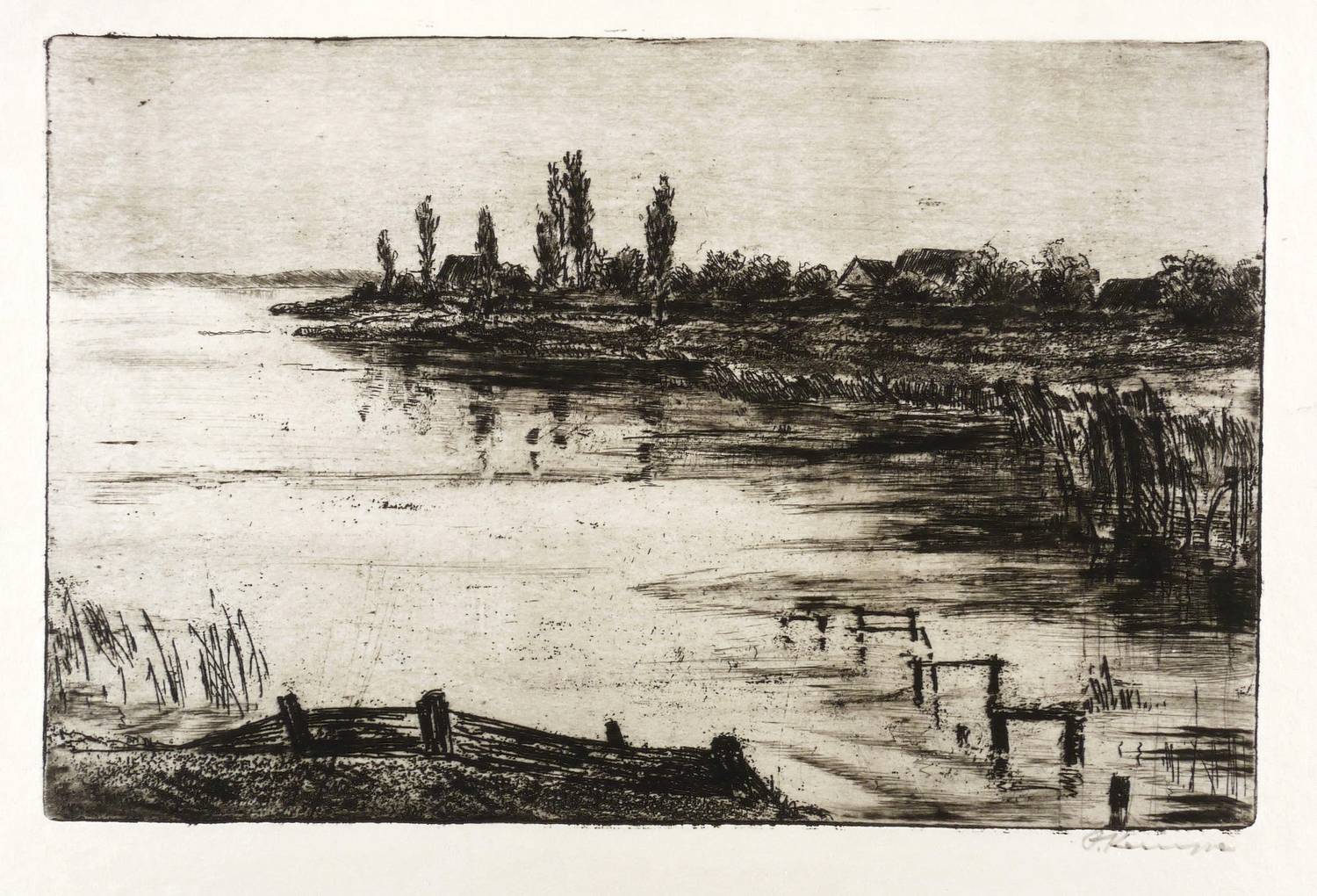 1943-1945. Radierung / Vernis mou, Strichätzung & Kaltnadel, in Schwarz, auf festem gelbem Velin. – Originale Künstlergrafik, von Fritz Kempe. – 19,1 x 29,4 cm (Darstellung / Platte), 26 x 38 cm (Blatt).