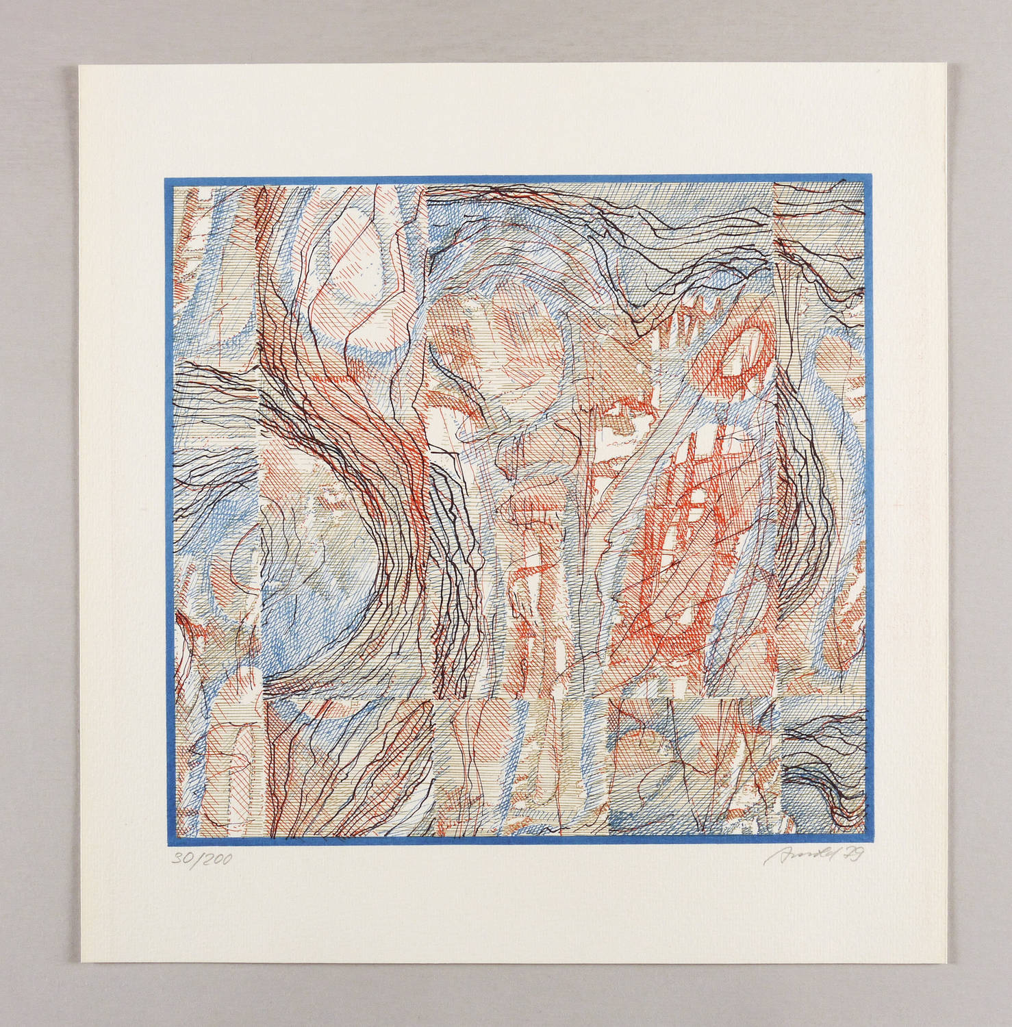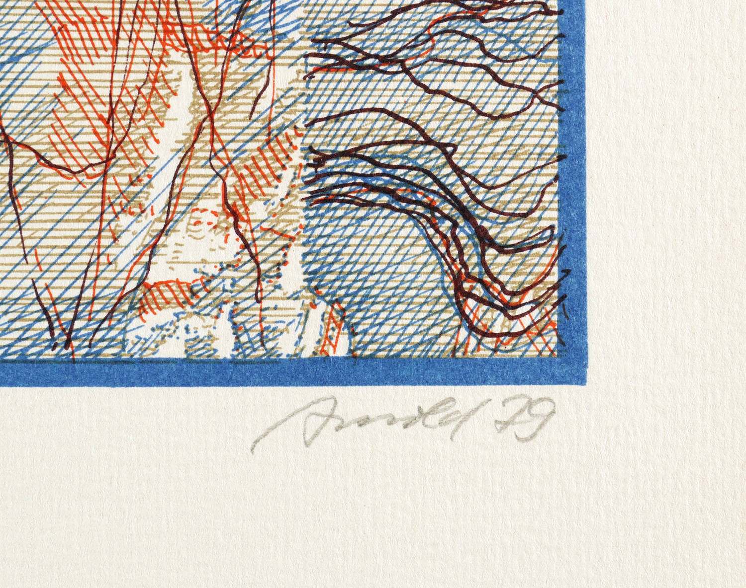 1979. Farboffsetlithografie / Federllithografie, in 4 Farben, auf hartem hellchamois Velin. – Originale Künstlergrafik, von Ingo Arnold. – Auflage Exemplar Nr. 30/200. – 27,2 x 28,7 cm (Darstellung / Druckbild), 37 x 35 cm (Blatt).