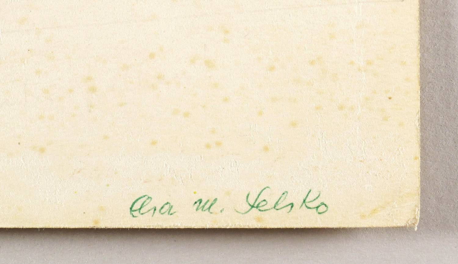 1974. Aquarell, auf gelblichem Velinkarton. – Von Elsa Maria Felsko-Schülke. – Unikat. – 28,7 x 19,0 cm (Darstellung), 35 x 26 cm (Blatt).