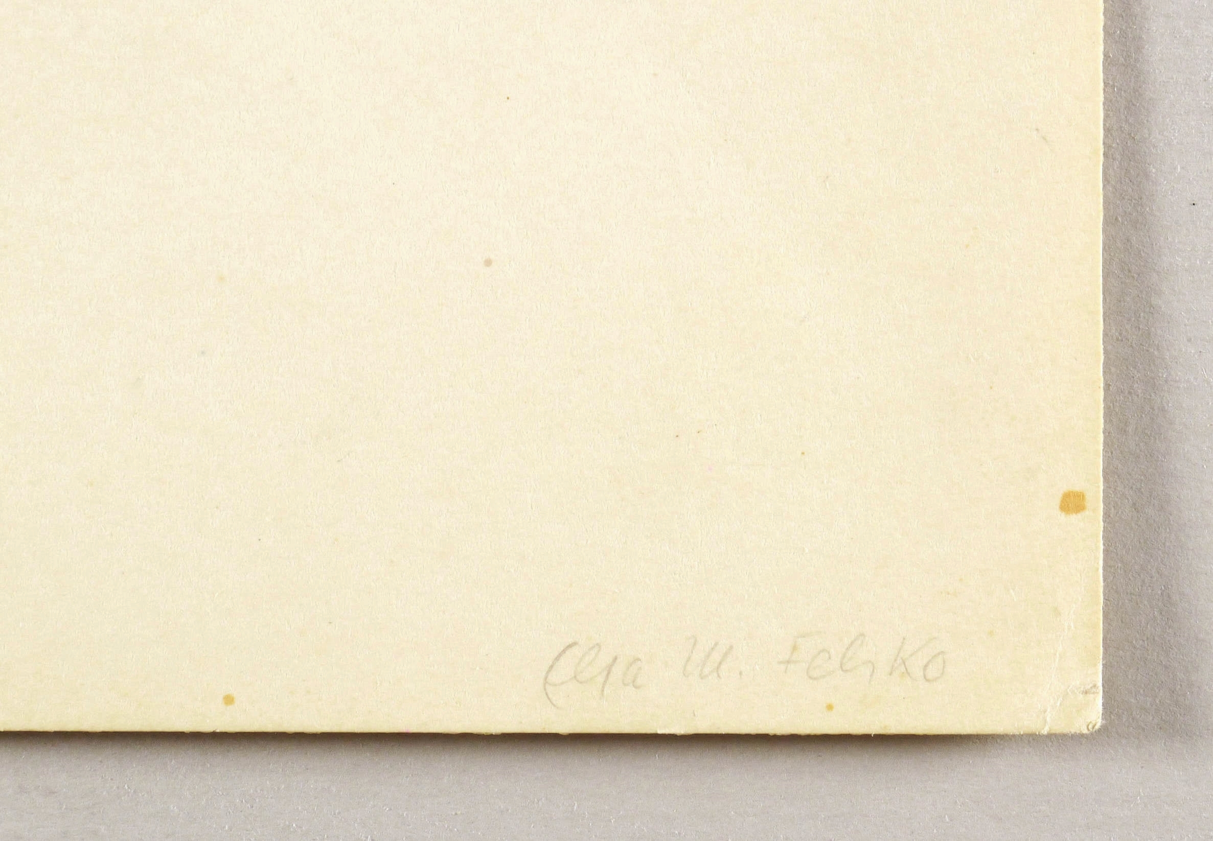 1960-1970. Aquarell, auf glattem chamois Velinkarton. – Von Elsa Maria Felsko-Schülke. – Unikat. – 24,1 x 17,0 cm (Darstellung), 40 x 30 cm (Blatt).