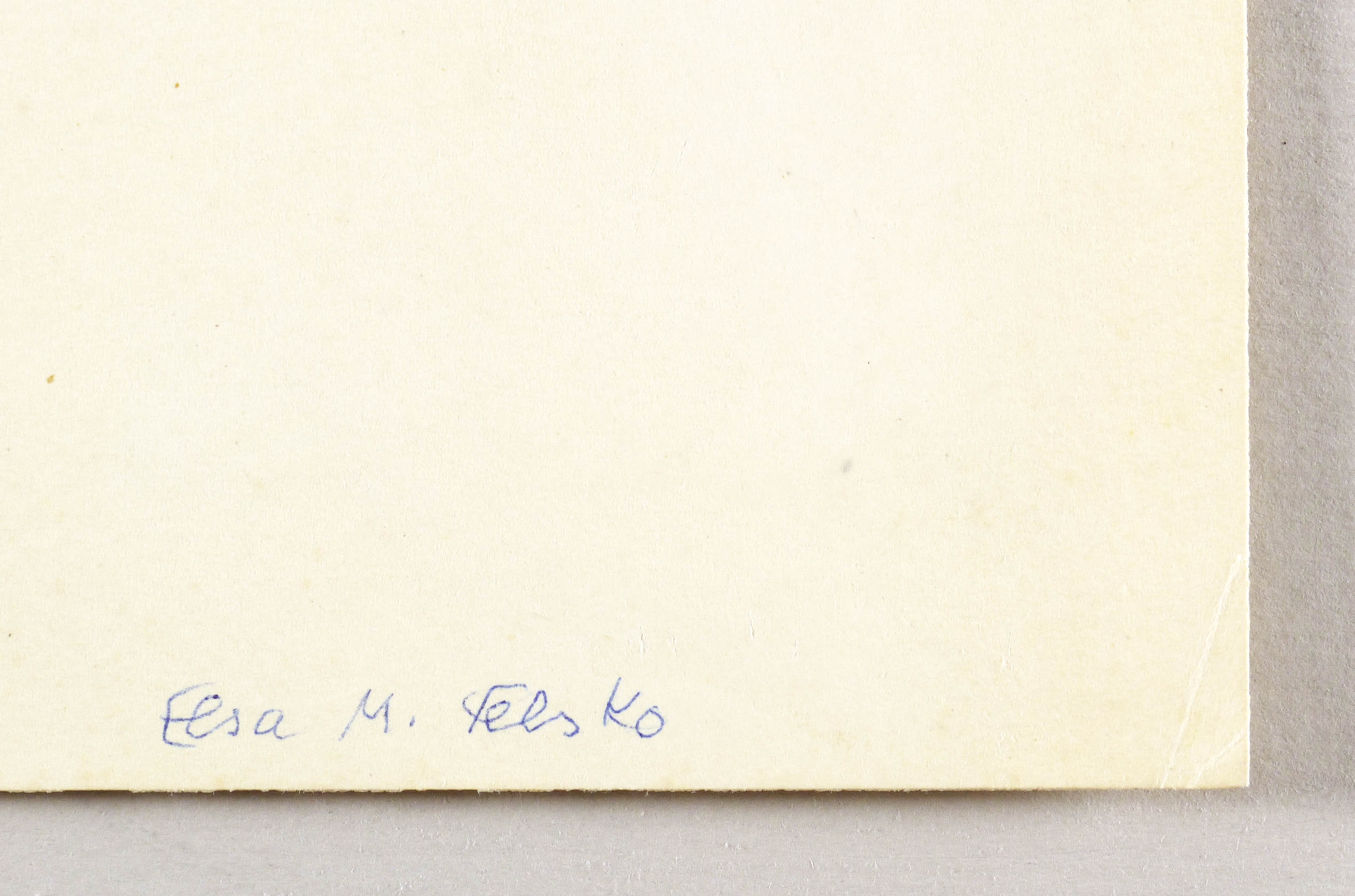 1963. Aquarell, auf glattem chamois Velinkarton. – Von Elsa Maria Felsko-Schülke. – Unikat. – 24,2 x 16,0 cm (Darstellung), 41 x 30 cm (Blatt).