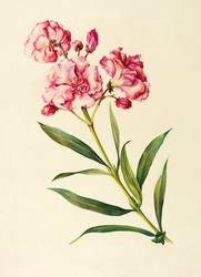 Rechts unten in Kugelschreiber signiert: ″Elsa M. Felsko″. Links unten am Blattrand in Bleistift betitelt: ″Nerium Oleander? Oleander; Rosenlorbeer. Anatolien″. Verso weiter bezeichnet und datiert. – Botanisches Aquarell von allerhöchster zeichnerischer wie koloristischer Qualität. – Weitgehend tadellos. Farbfrisch und kontrastreich. Sehr guter Zustand.