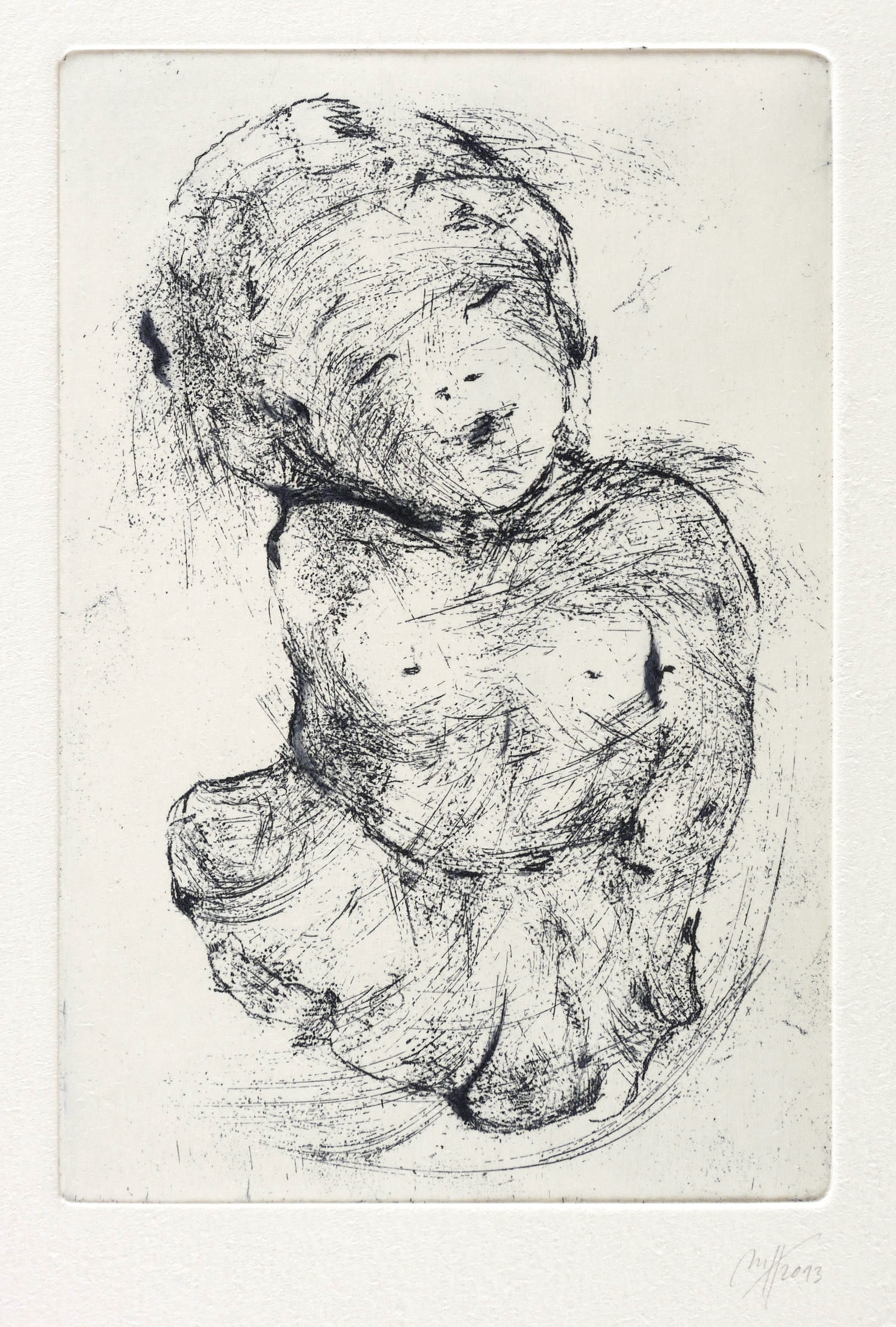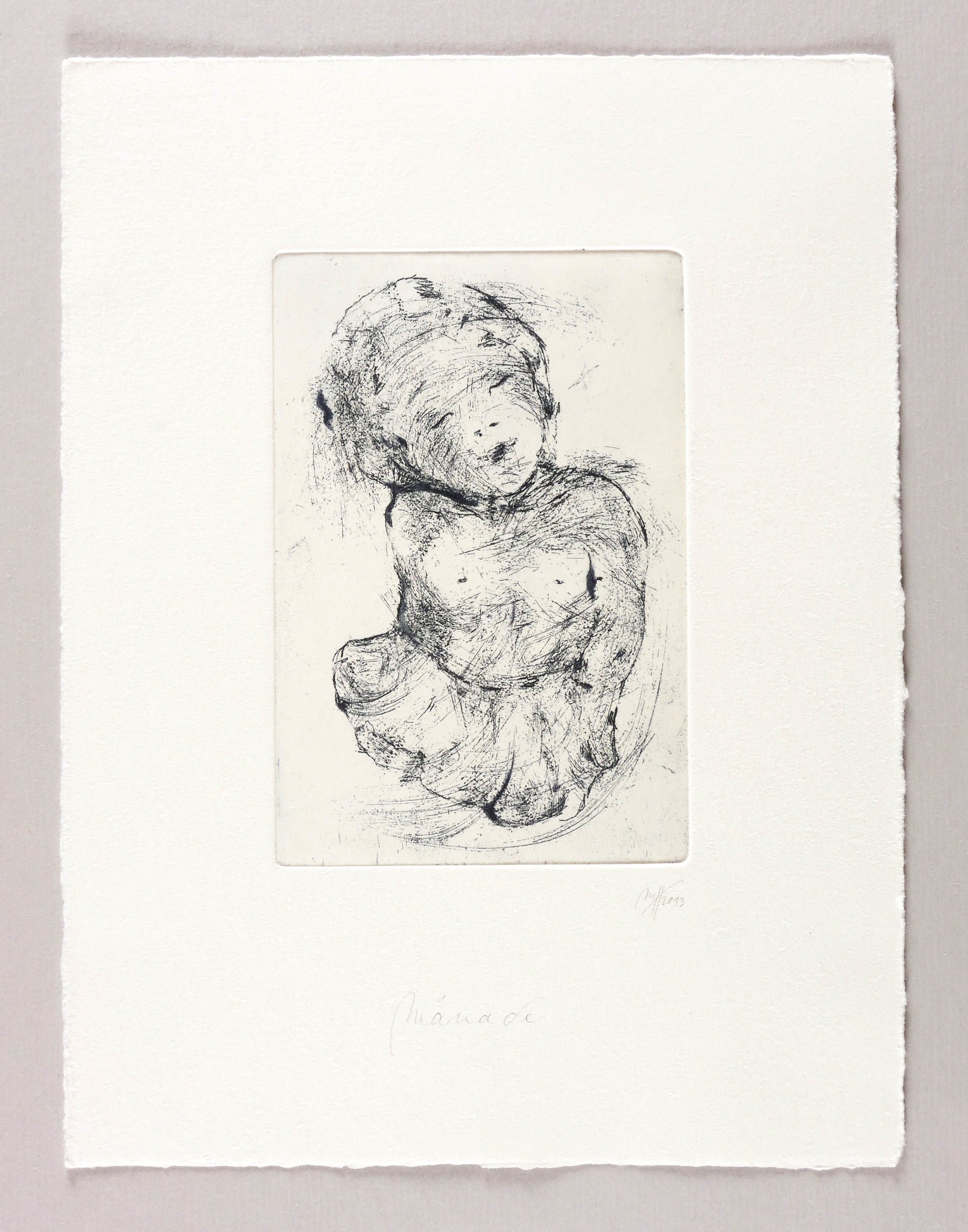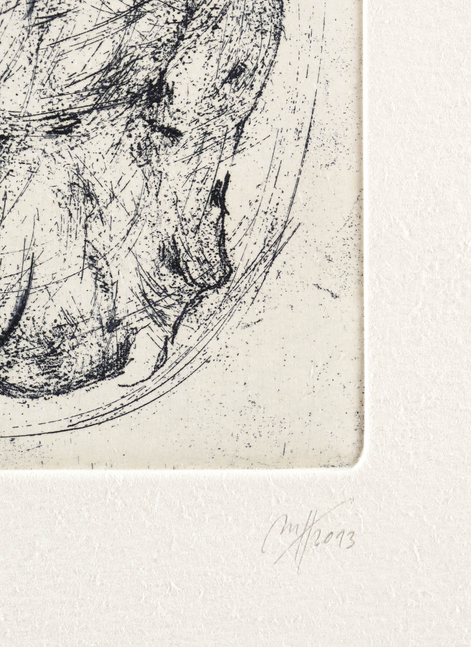 2013. Radierung / Vernis mou & Kaltnadel, in Schwarz, auf schwerem hellchamois Velin. – Von Madeleine Heublein. – 14,7 x 9,8 cm (Darstellung / Platte), 27 x 20 cm (Blatt).