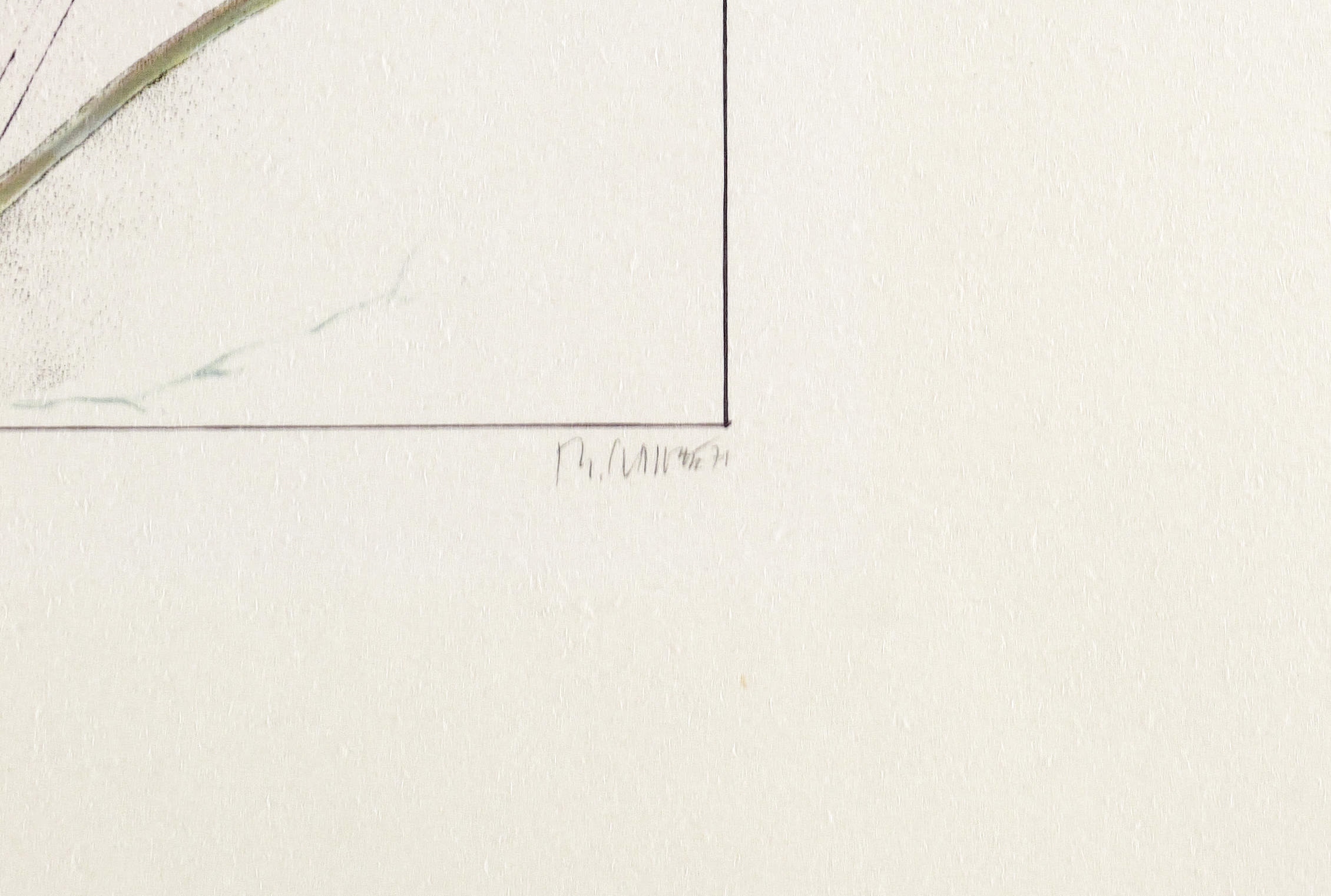 1971. Farblithografie / Feder- & Pinsellithografie, partiell punktiert, in Grün, Rot & Schwarz, auf chamois Velin. – Von Reiner Schwarz. – Auflage Exemplar Nr. 17/25. – 28,1 x 21,1 cm (Darstellung / Einfassungslinie), 60 x 43 cm (Blatt).