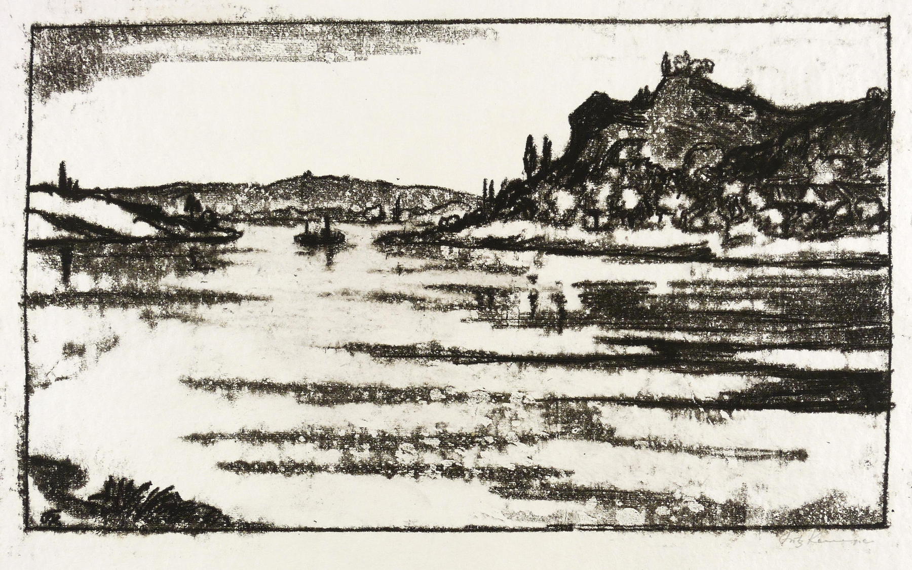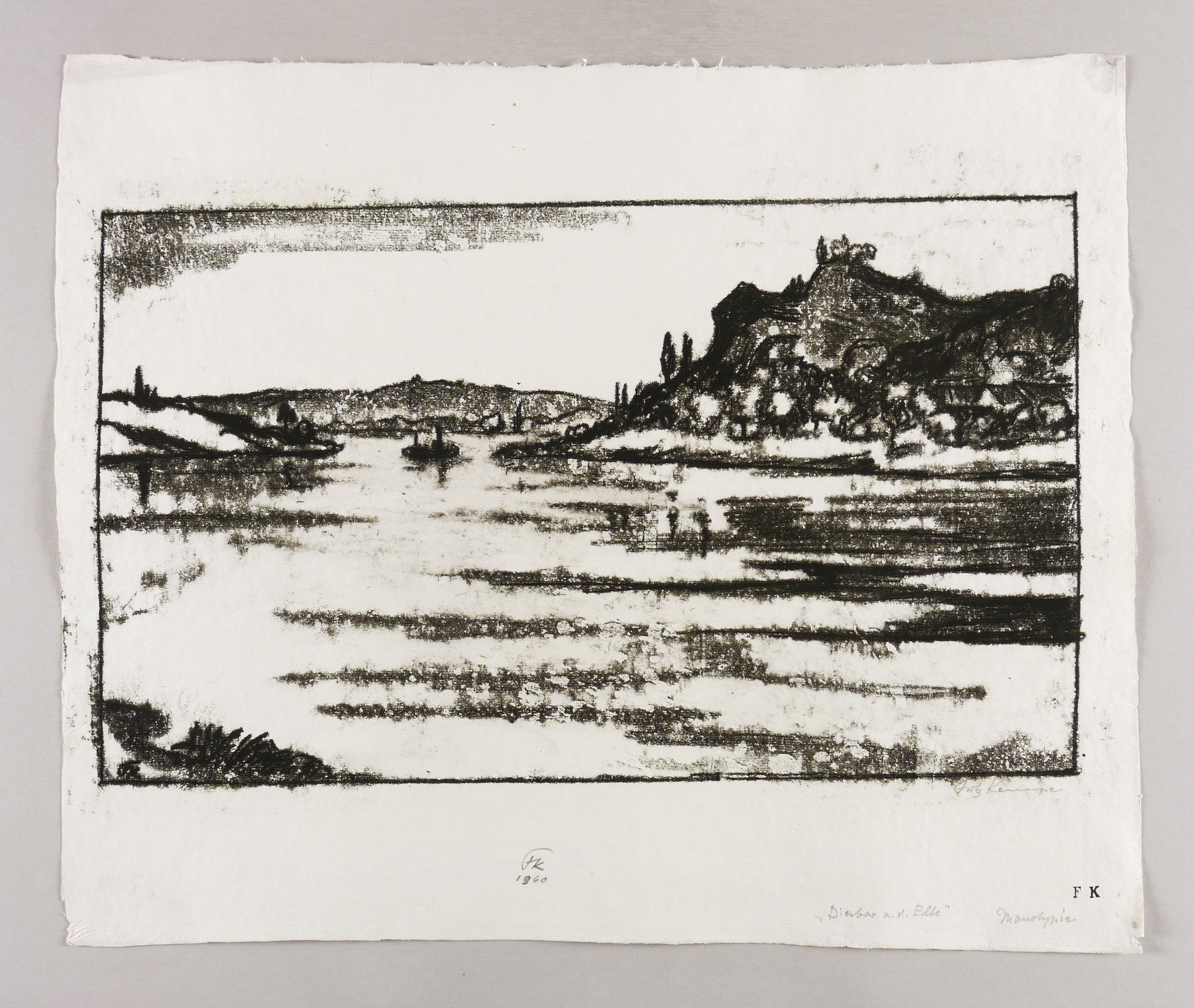 Rechts unten in Bleistift signiert: ″Fritz Kempe″. Unterhalb monogrammiert und signiert: ″FK 1960″. In der Blattecke rechts unten bezeichnet: ″Diesbar a.d. Elbe / Monotypie.″ In der Platte links unten nochmals Monogramm. – Sehr guter Zustand.