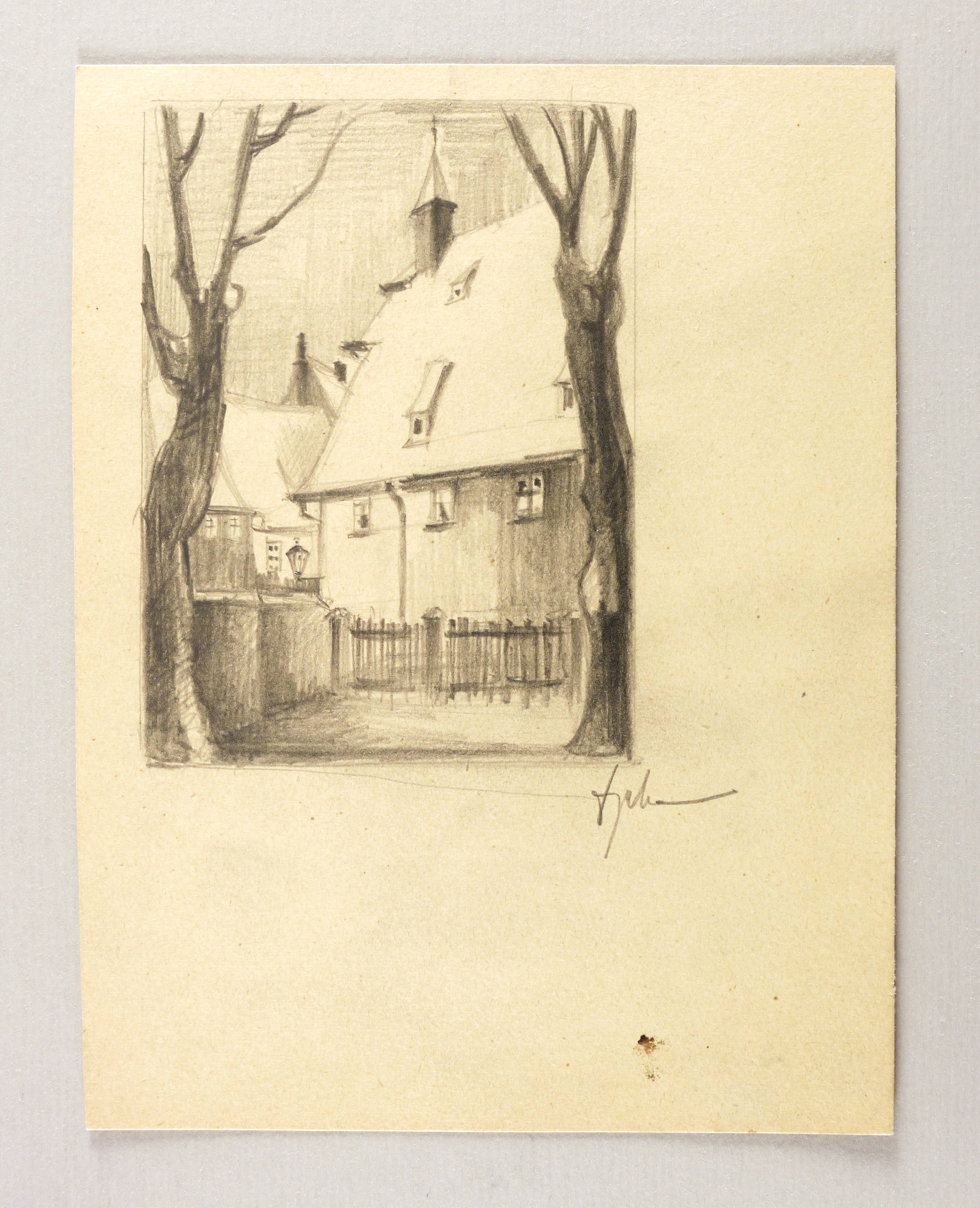 Rechts unten in Bleistift signiert. – Im breiten Rand unten etwas fleckig. Sonst guter Zustand.