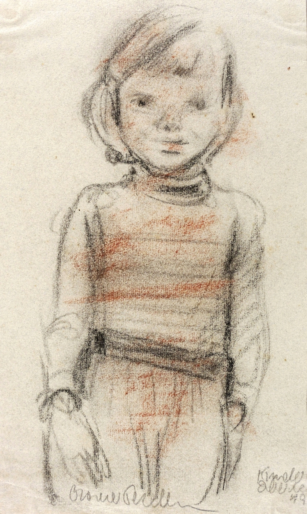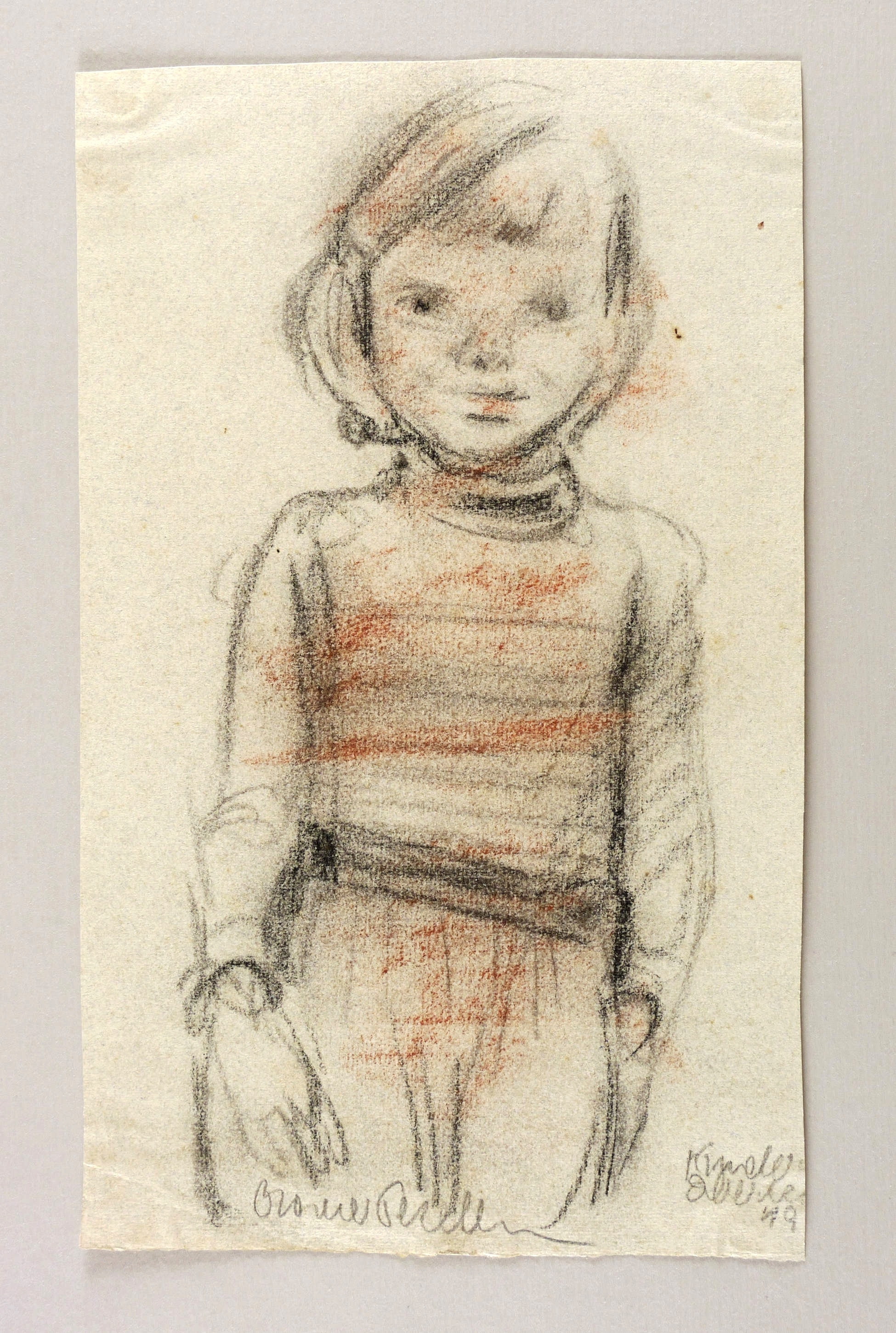 Links unten signiert: ″Bauer Pezellen″. Rechts unten etwas unleserlich bezeichnet und datiert: ″Kinder[blick?] 49″. Verso fremd bezeichnet: ″Slg. Steinbach // Mappe XLI | Bl. 23 Ma″. – Tadellos. Sehr guter Zustand.