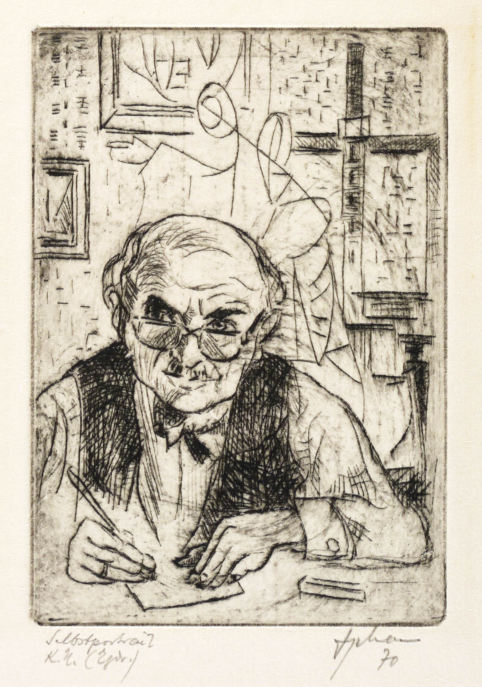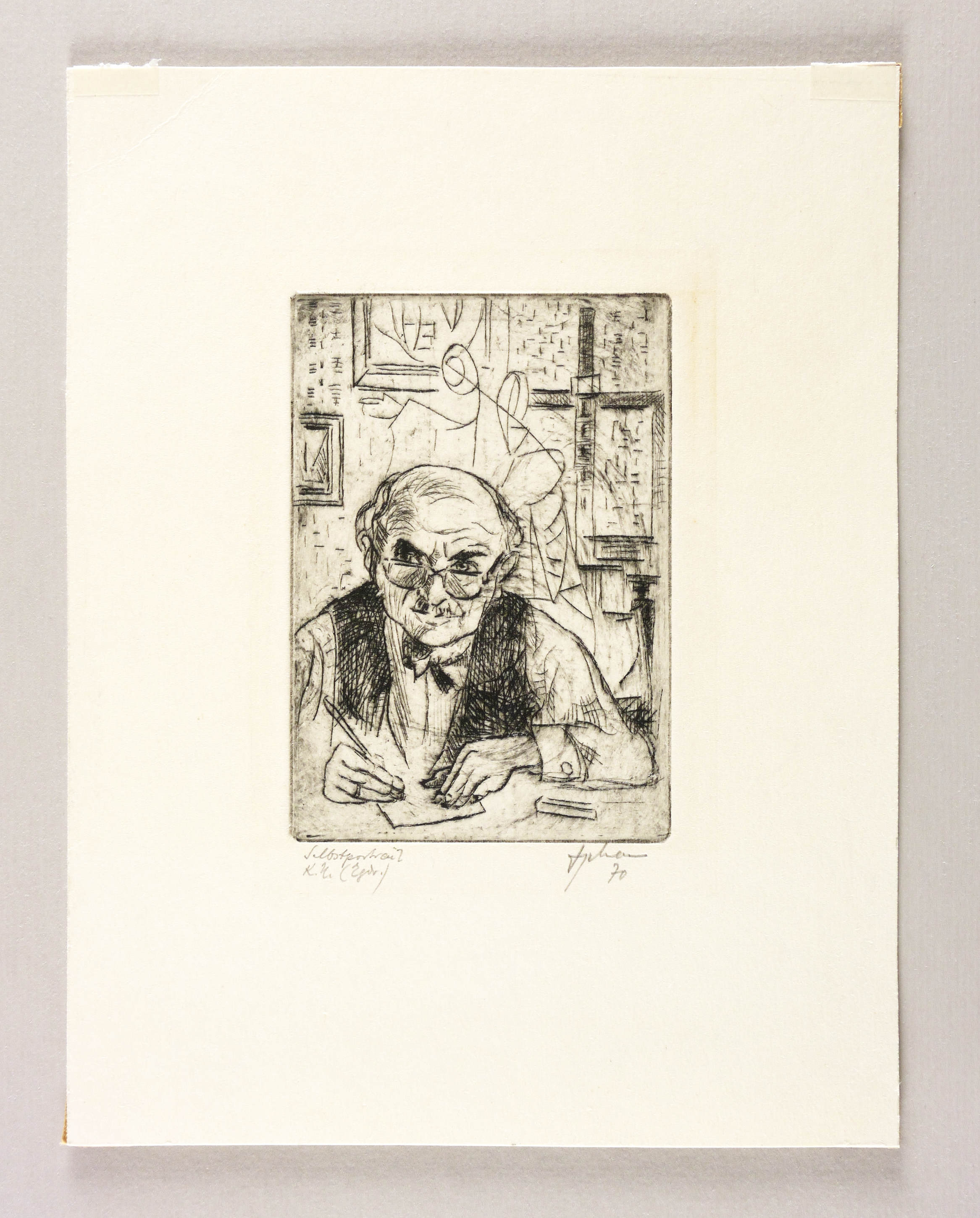 Rechts unten in Bleistift signiert und datiert: ″Engelmann 70″. Links Titel. Verso in Kugelschreiber nochmals betitelt, datiert und signiert: ″Selbstporträt / 1970 / Wilhelm Engelmann″. – Sehr guter Zustand.