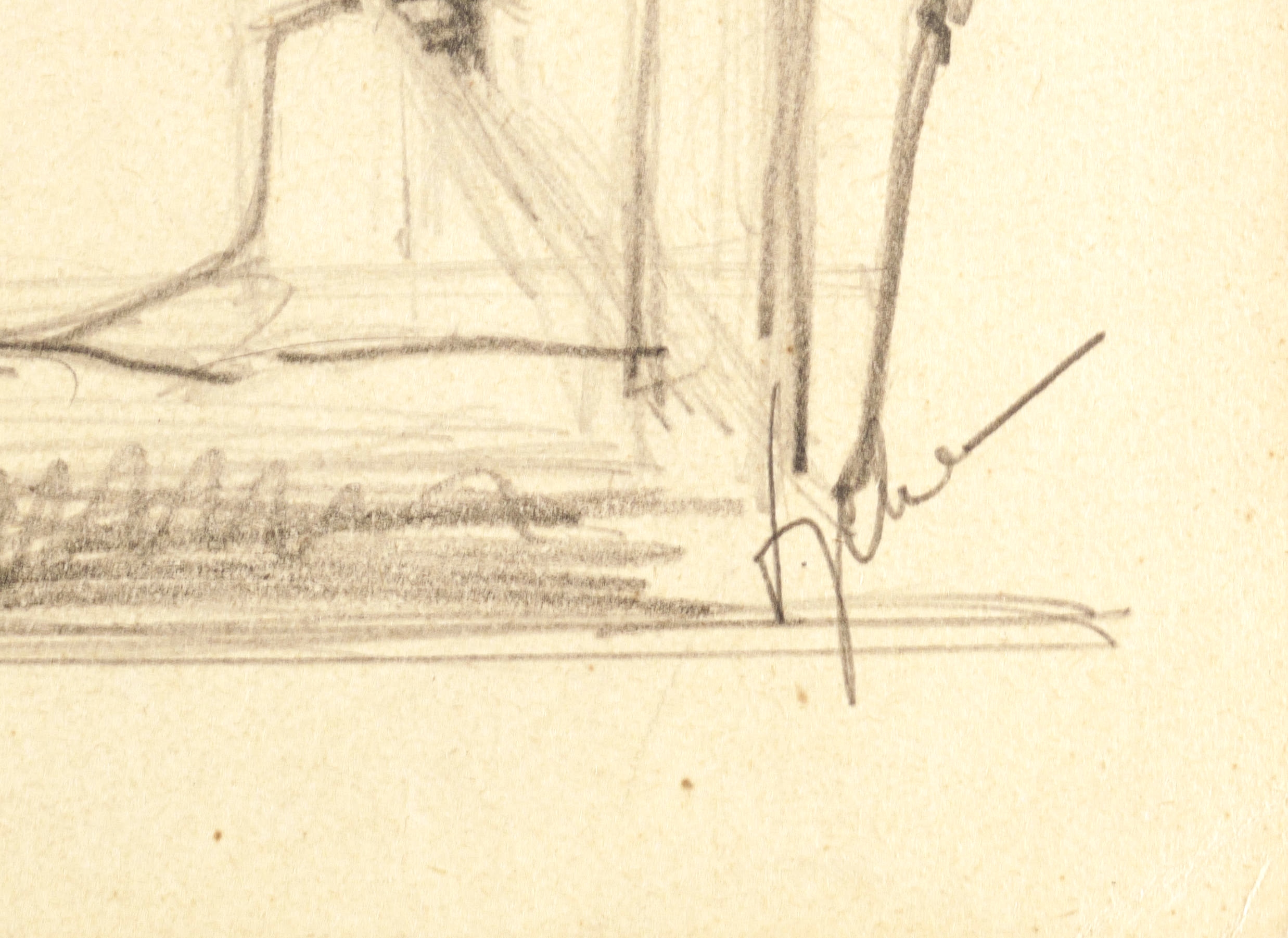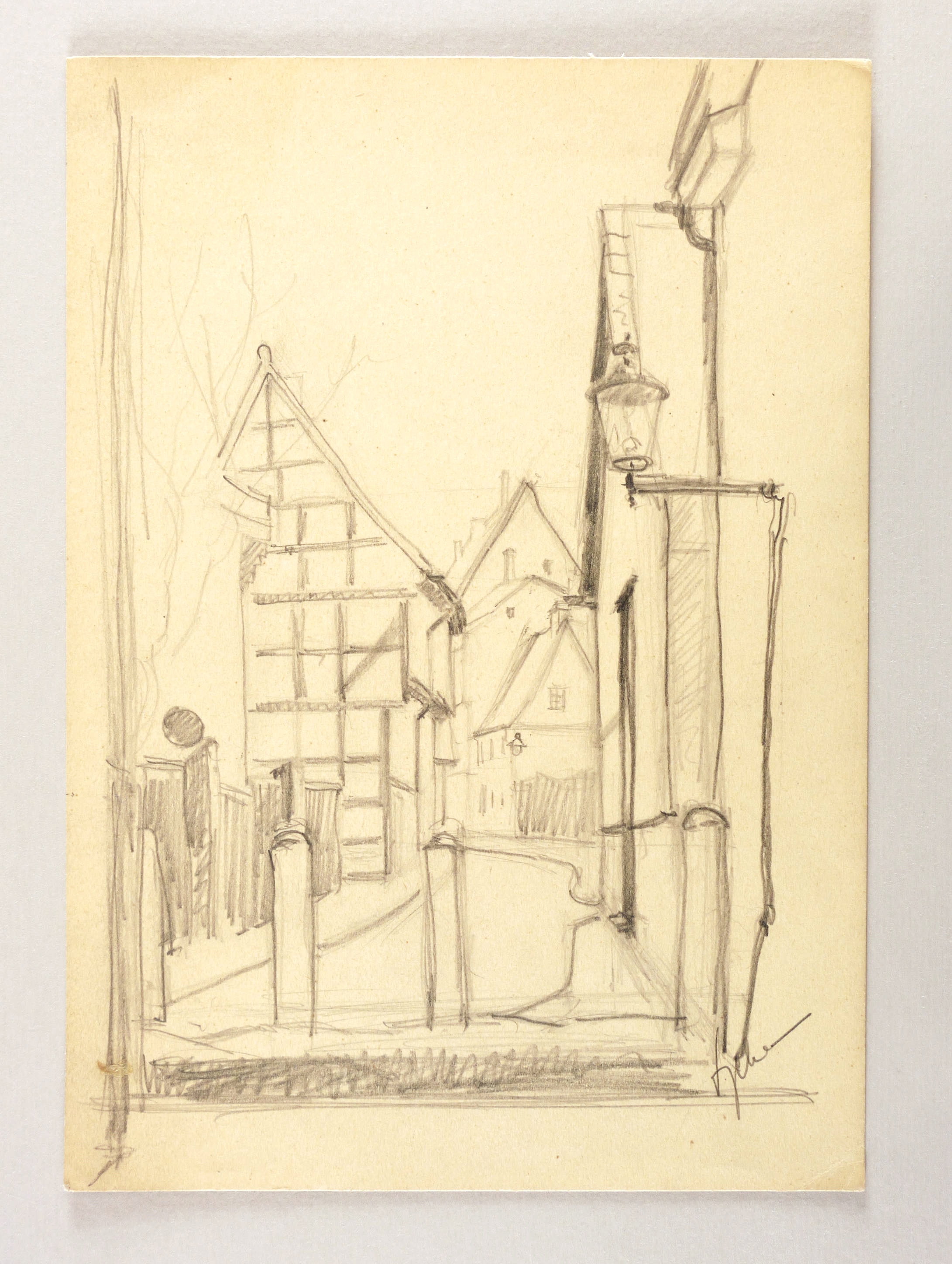 1945-1955. Zeichnung / Bleistiftzeichnung, auf gelblichem Karton. – Originale Künstlergrafik, von Wilhelm Engelmann. – Unikat. – 29,7 x 21,0 cm (Darstellung / Blatt).