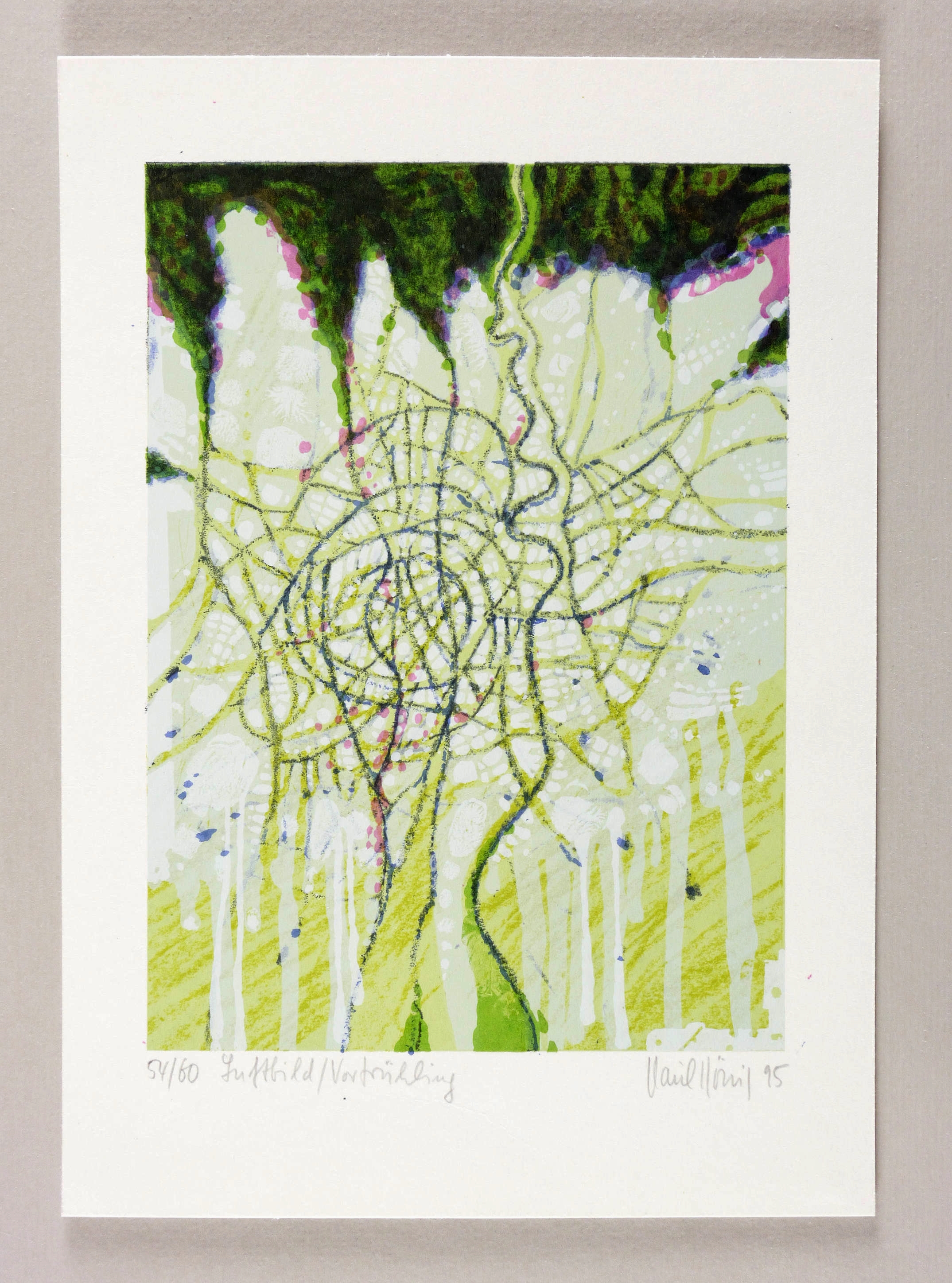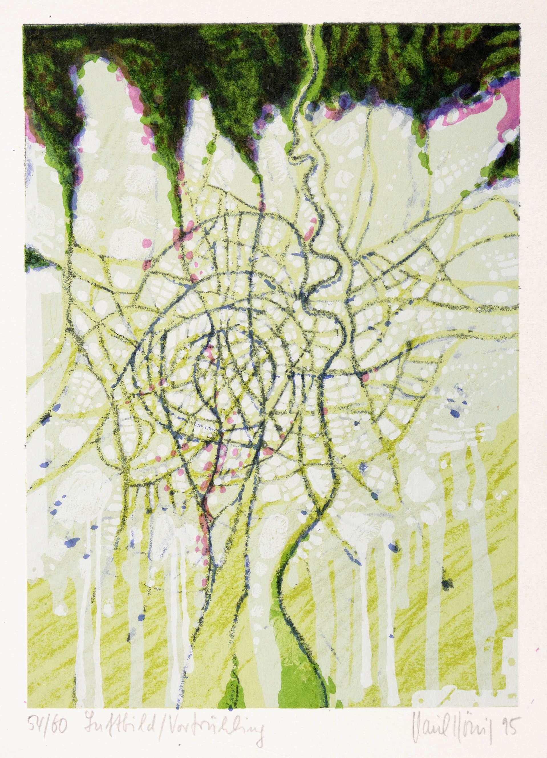 1995. Farbsiebdruck / Farbserigrafie, in 6 Farben, auf weißem Velinkarton. – Von Paul König. – Auflage Exemplar Nr. 54/60. – 23,0 x 16,5 cm (Darstellung), 30 x 21 cm (Blatt).