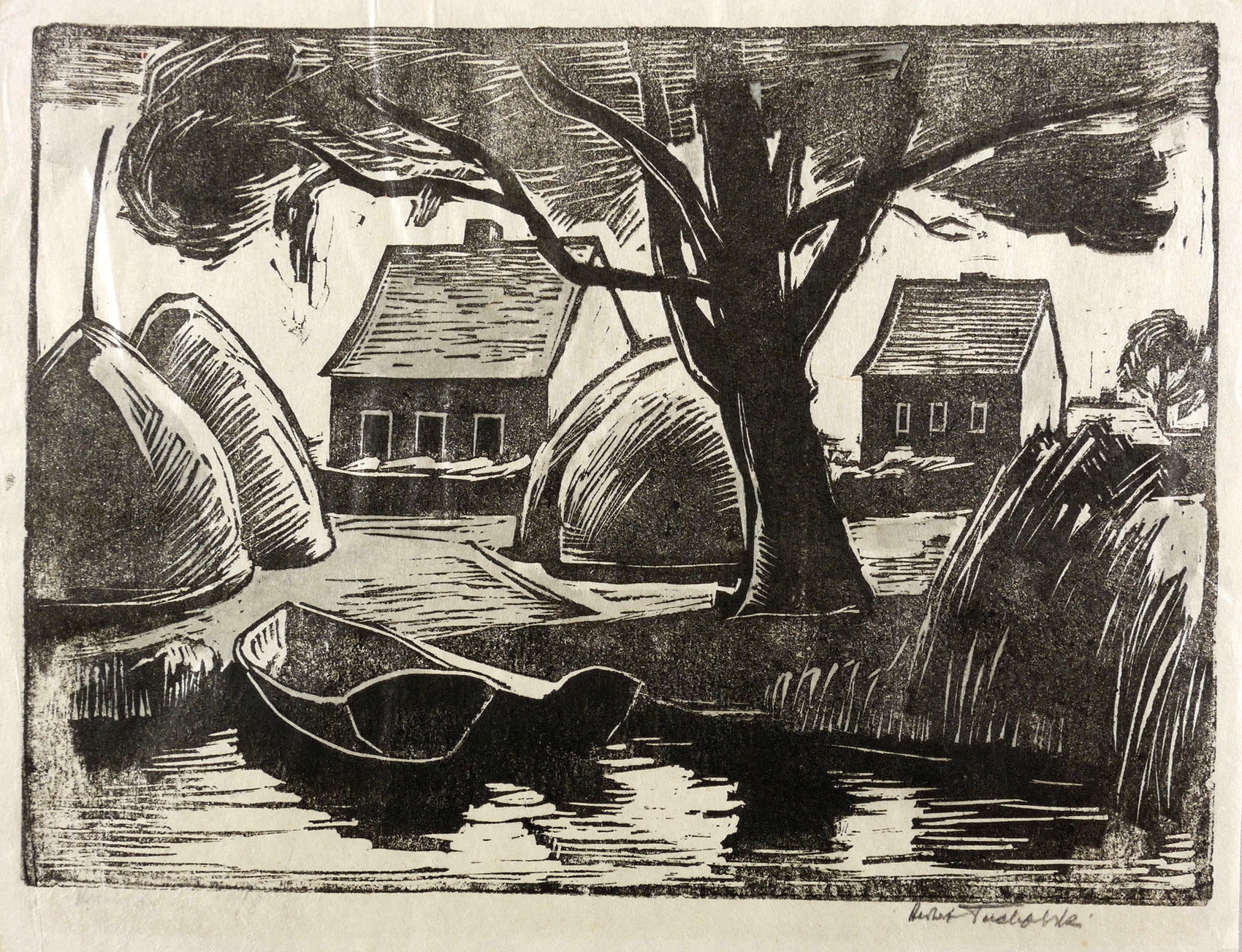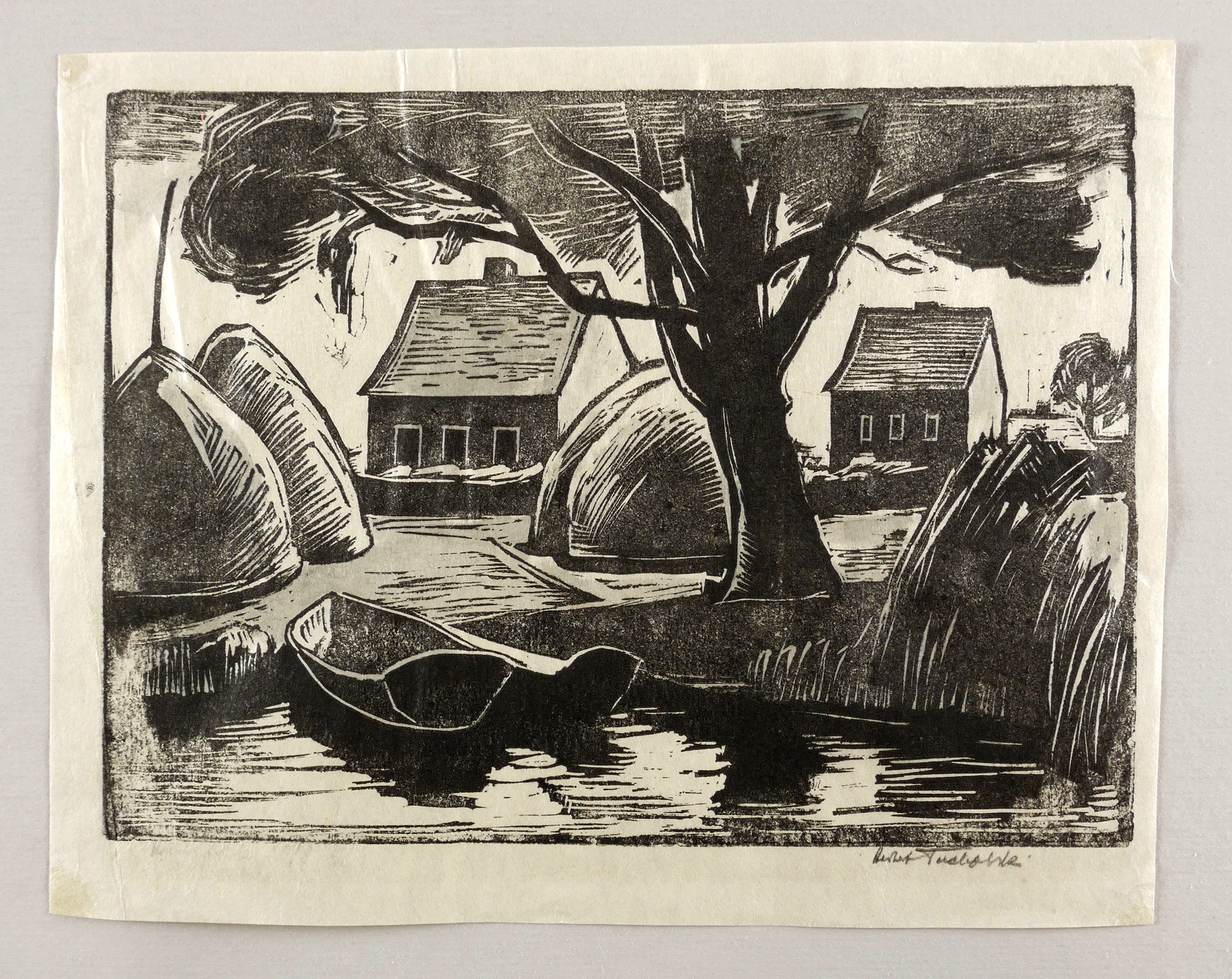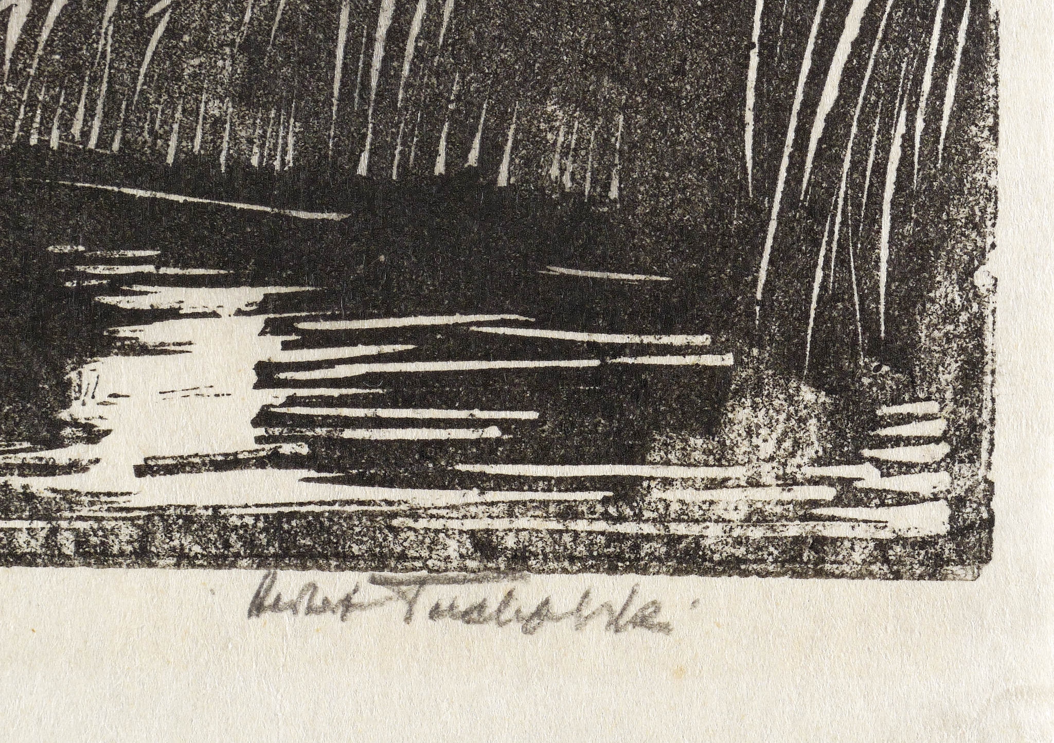 Nicht bei Karnahl. – Rechts unten in Bleistift signiert: ″Herbert Tucholski″. – Handdruck von 2 Platten. - Das Werkverzeichnis von Karnahl führt diesen Holzschnitt nicht, wohl aber das Motiv in verschiedenen Radier-Techniken (vgl. Karnahl 242-244). – Leichte Montagespuren in den Ecken. Guter Zustand.